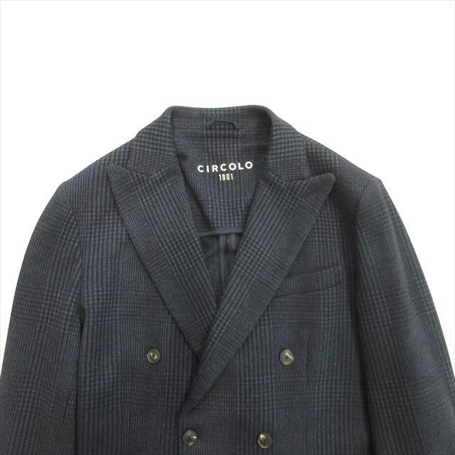 美品 チルコロ1901 CIRCOLO1901 ダブル テーラード ジャケット ブレザー グレンチェック コットン ウール 50 ネイビー メンズ
