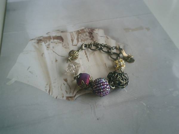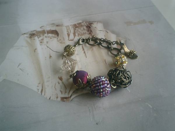 仏蘭西映画の余韻・・シリーズです♪オペラ座の夜・・華やかな異素材を集めたブレスレットです♪10ミリから18ミリ位までのデザインビーズやサテンビーズ、サテンビーズやジルコニアボール、メタルビーズをデザインチェーンで繋ぎました♪シックな色でまとめて大人のロマンチックしています♪長さは全長23センチ位で調節自由です♪♪お揃いのネックレスも出品しています♪ハンドメイドをご理解いただいてノークレーム・ノーリターンでお願いします♪