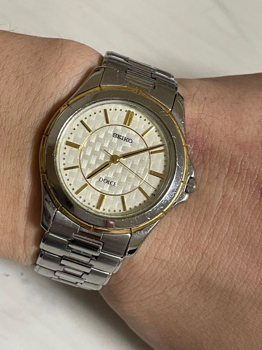 SEIKOセイコー 本物 8J41-0AF0 ドルチェ SS アイボリーシャンパン文字盤 クオーツ メンズ腕時計 稼働品