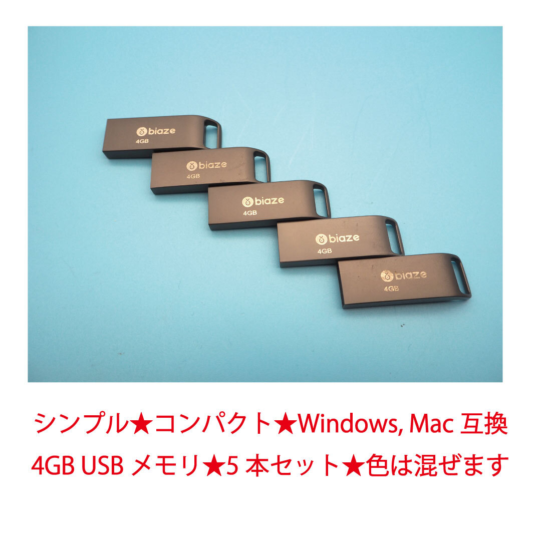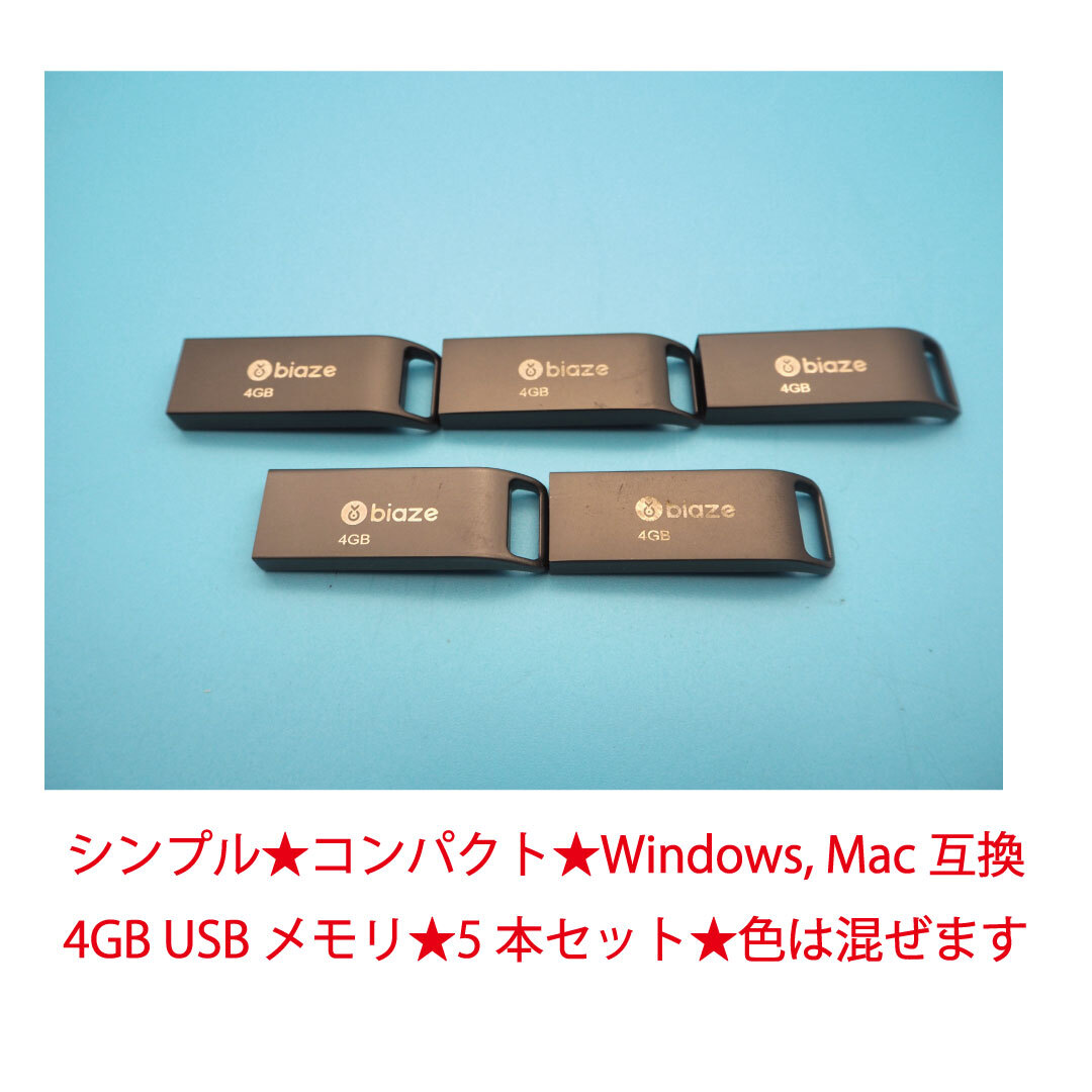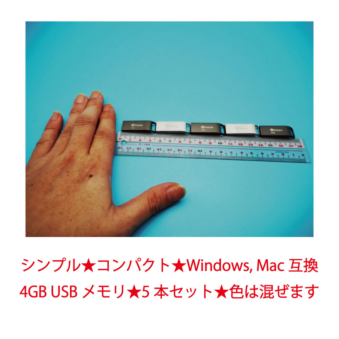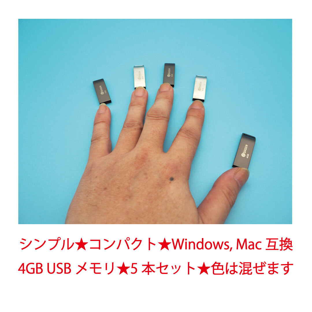 シンプルでコンパクトなUSBメモリ4GBの5本セットです。WindowsとMacで互換性のあるFAT32でフォーマットしています。色は2色ありますが、混ぜます。メモ代わりにちょうどいいサイズと容量です。