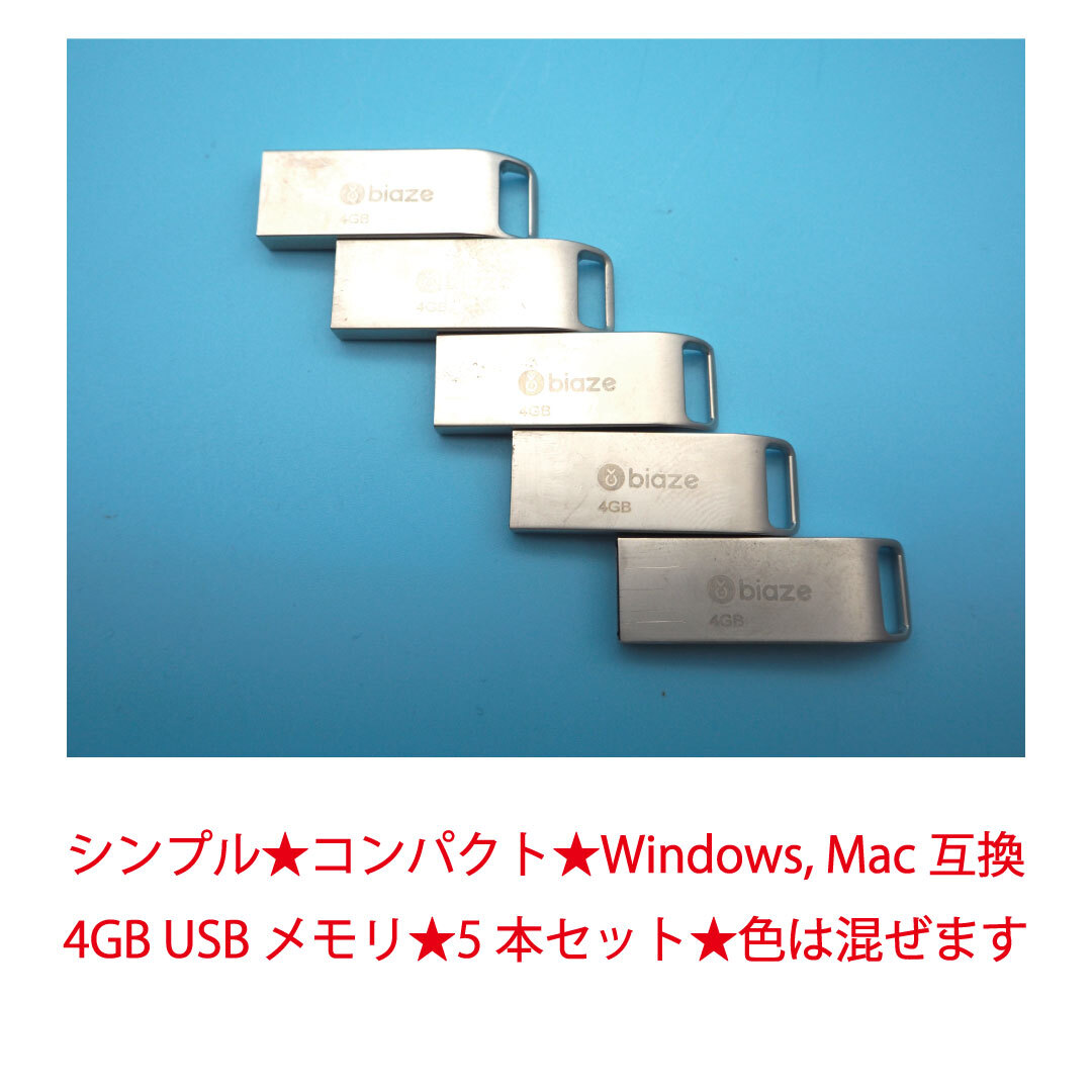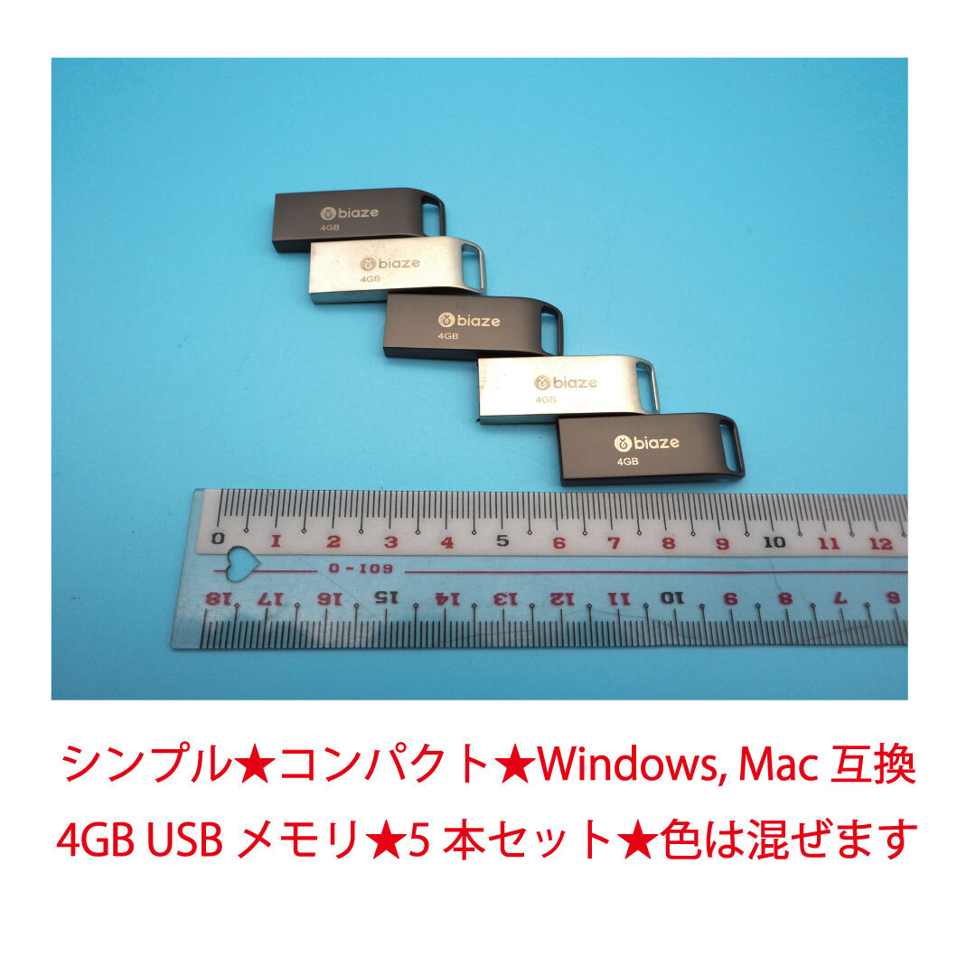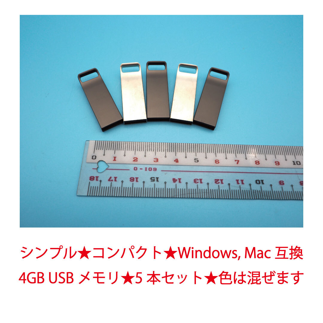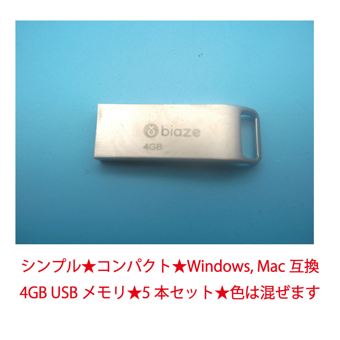シンプルでコンパクトなUSBメモリ4GBの5本セットです。WindowsとMacで互換性のあるFAT32でフォーマットしています。色は2色ありますが、混ぜます。メモ代わりにちょうどいいサイズと容量です。