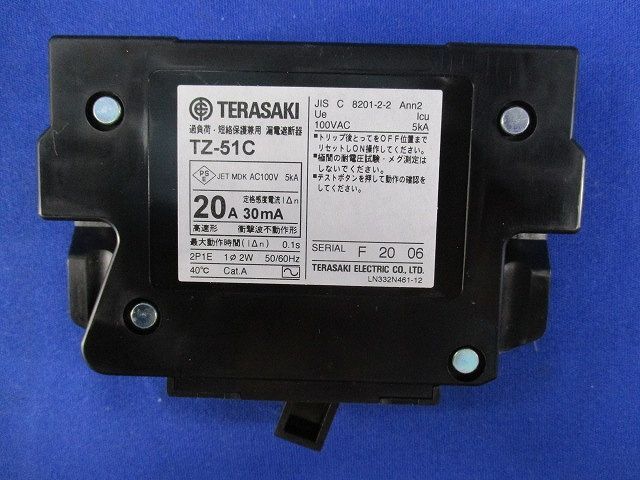 漏電遮断器2P1E20A 寺崎電気産業 TZ-51C