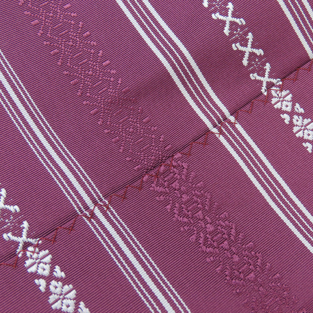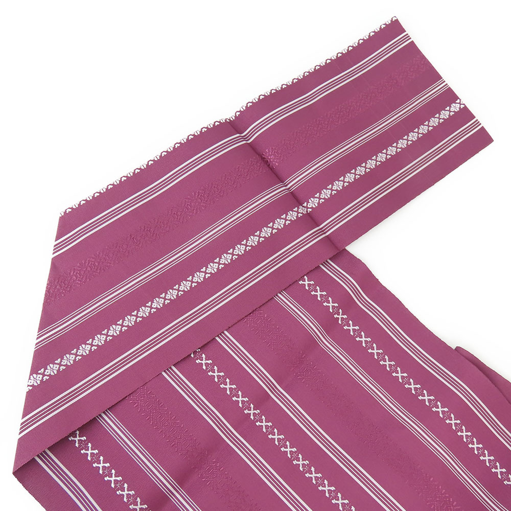 | 品名 | 【中古】 名古屋帯 洒落帯 正絹(金銀糸除く) 紫 白 八寸 和装 呉服 着物 松葉仕立 レディース 女性 |