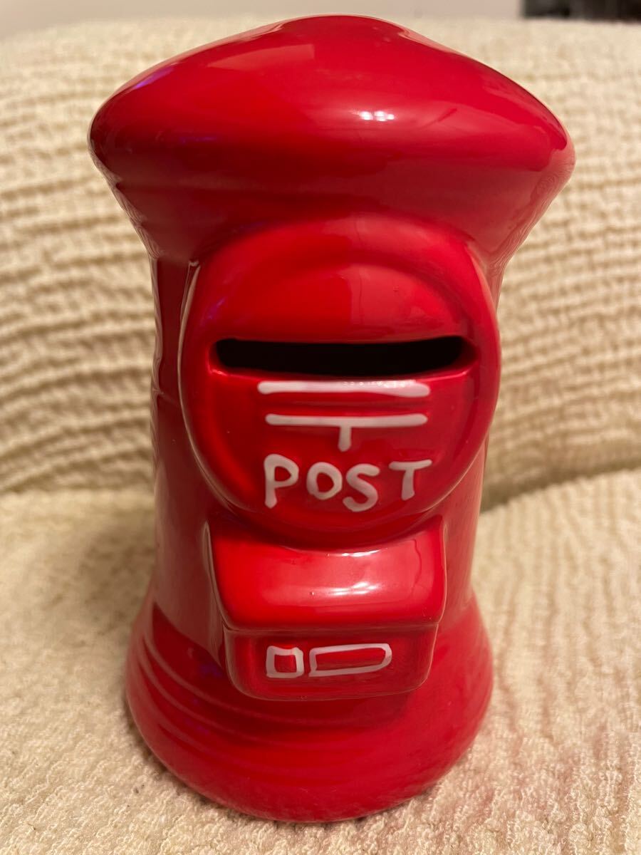 貯金箱 ポスト型 陶器製 赤色