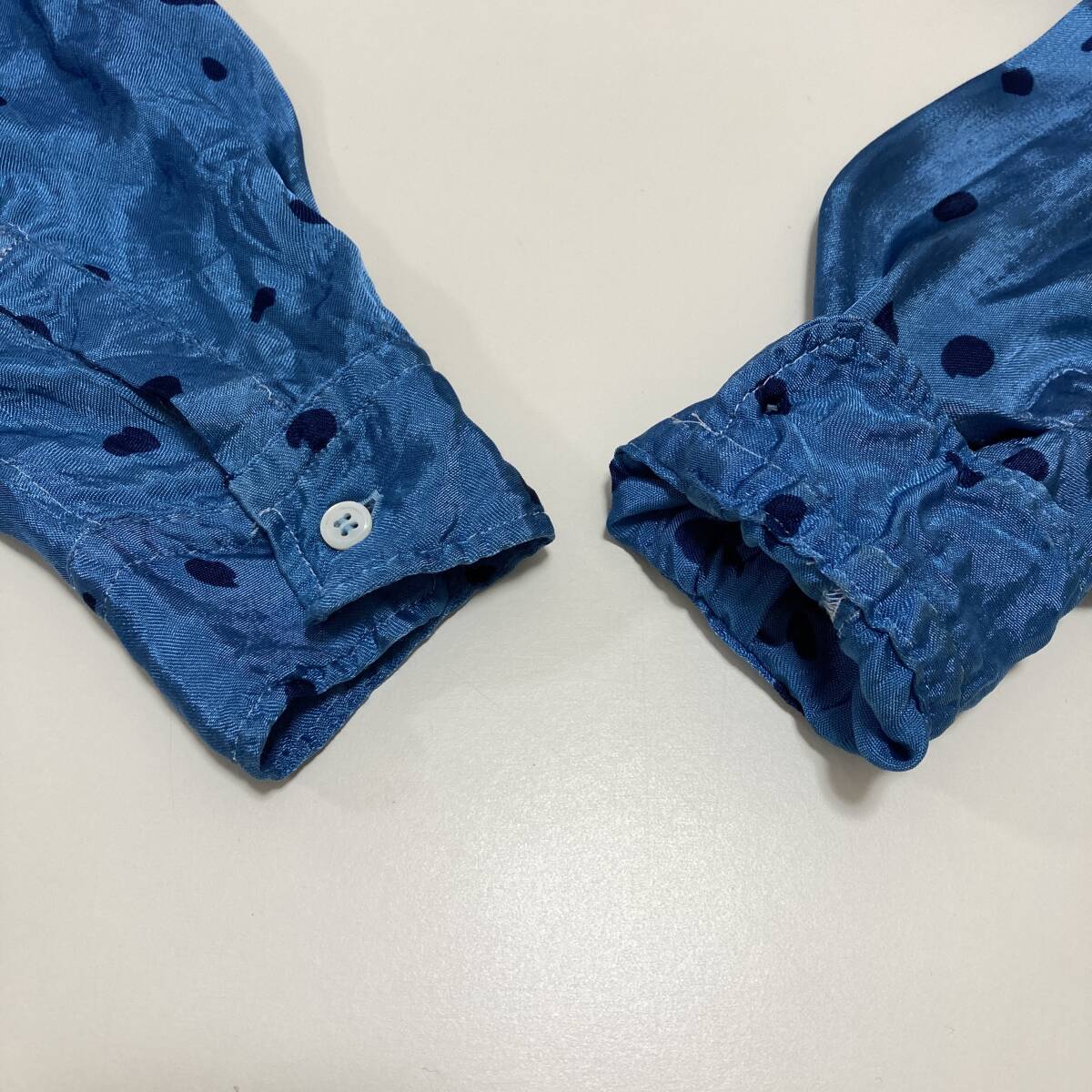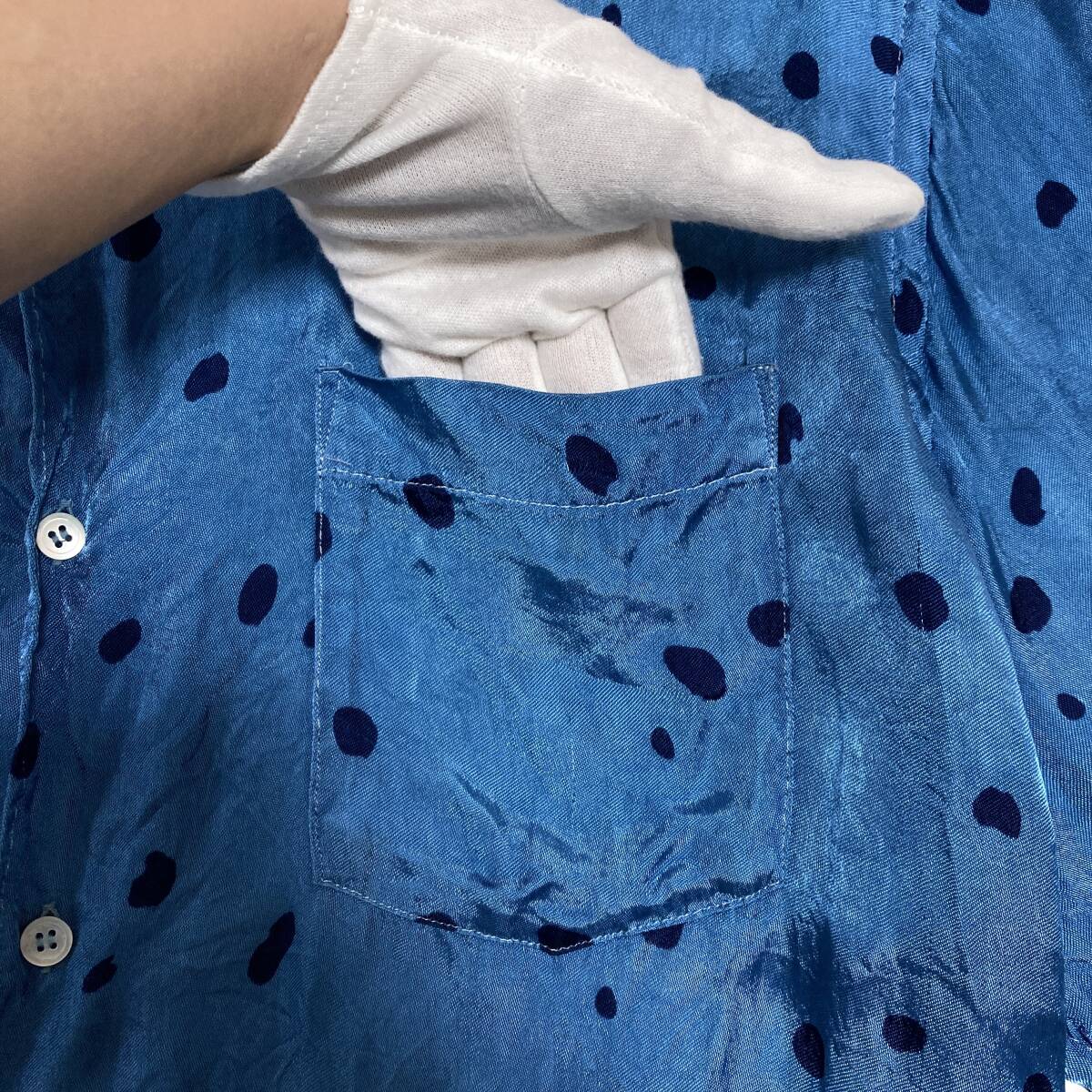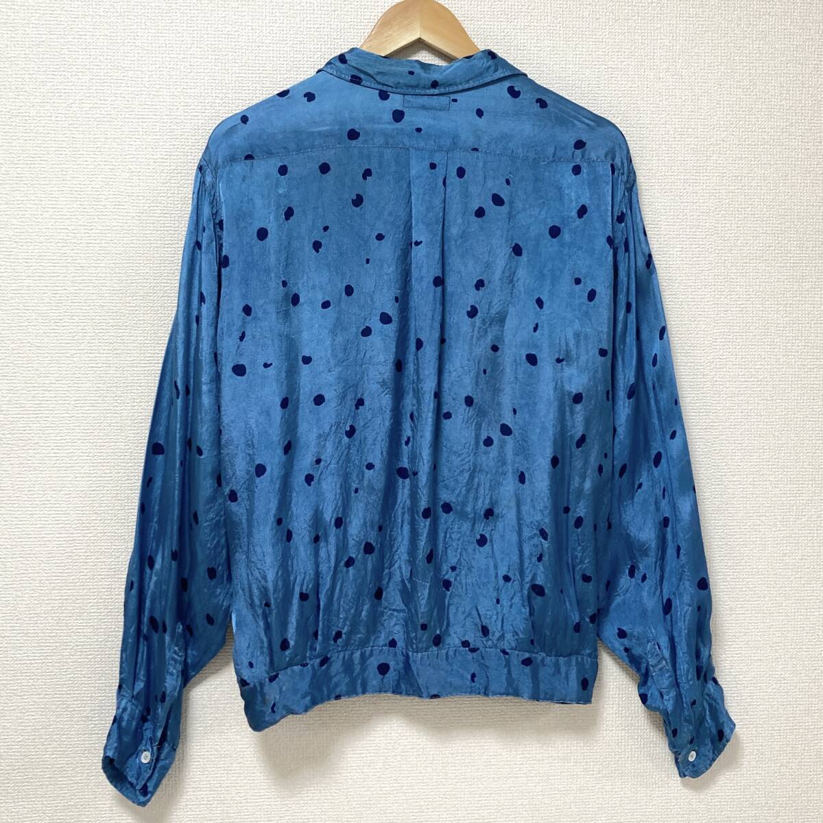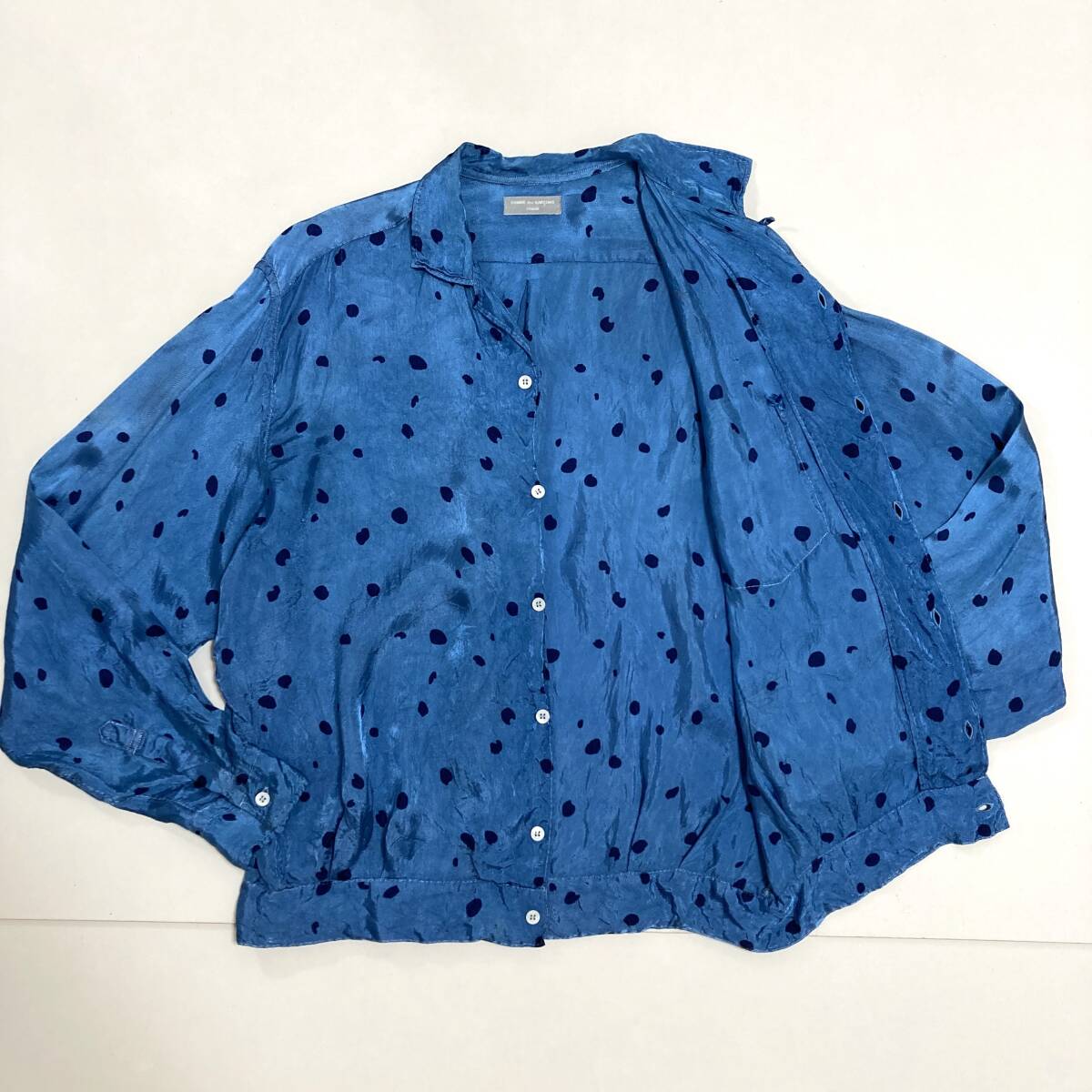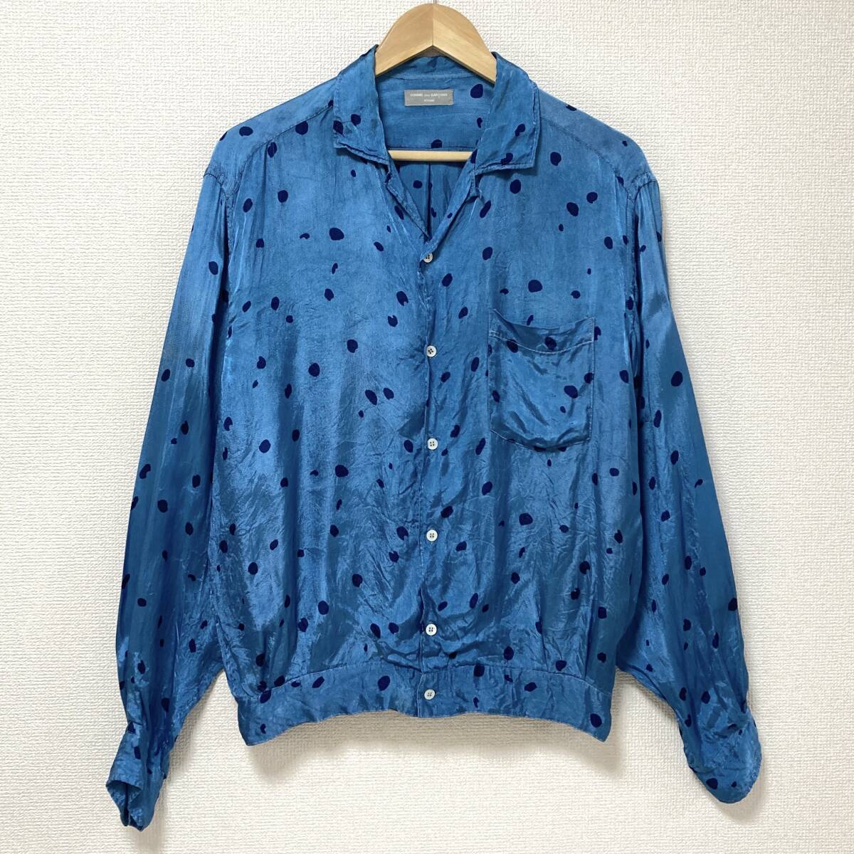 80s COMME des GARCONS HOMME レーヨン ドット オープンカラー 長袖 シャツ ブルー系