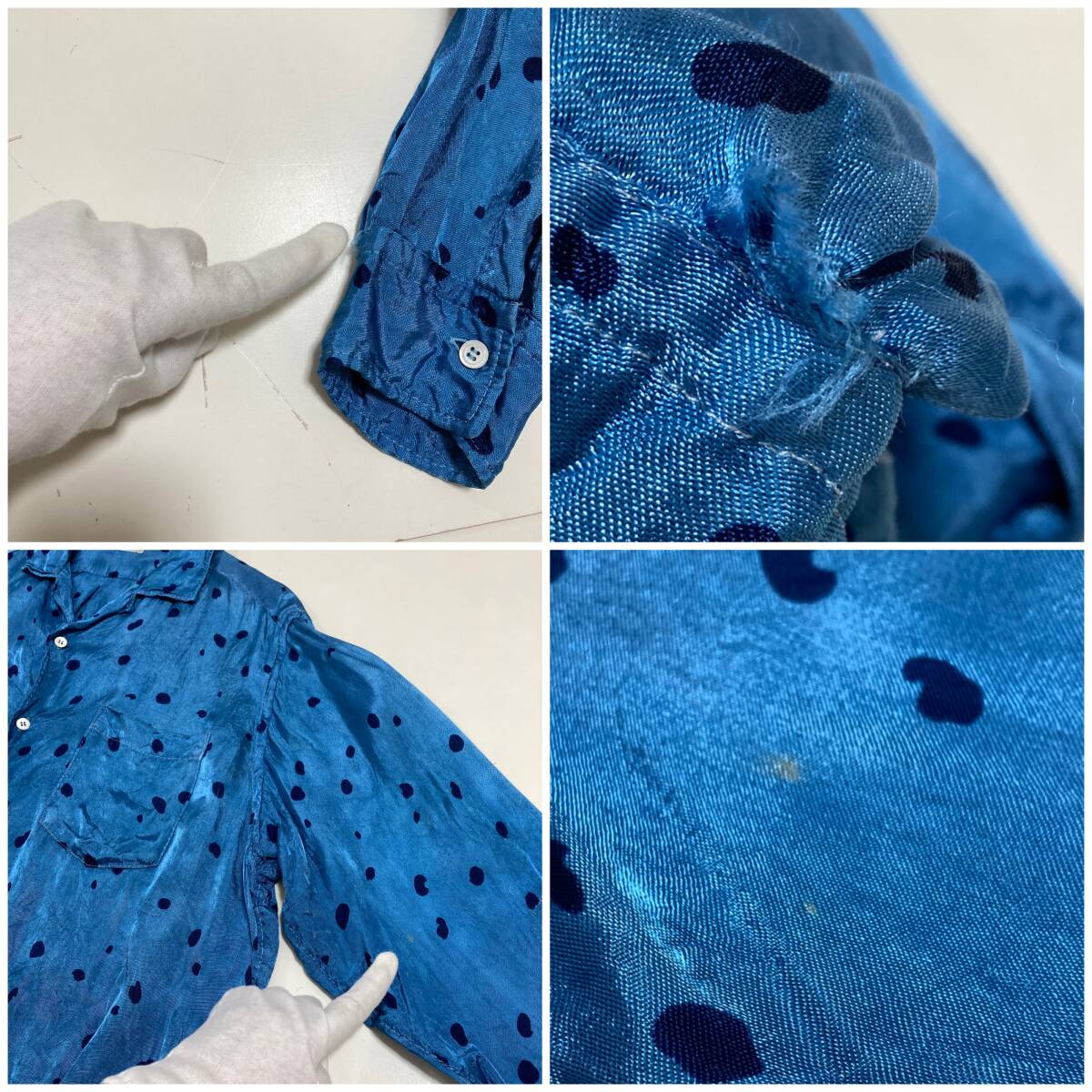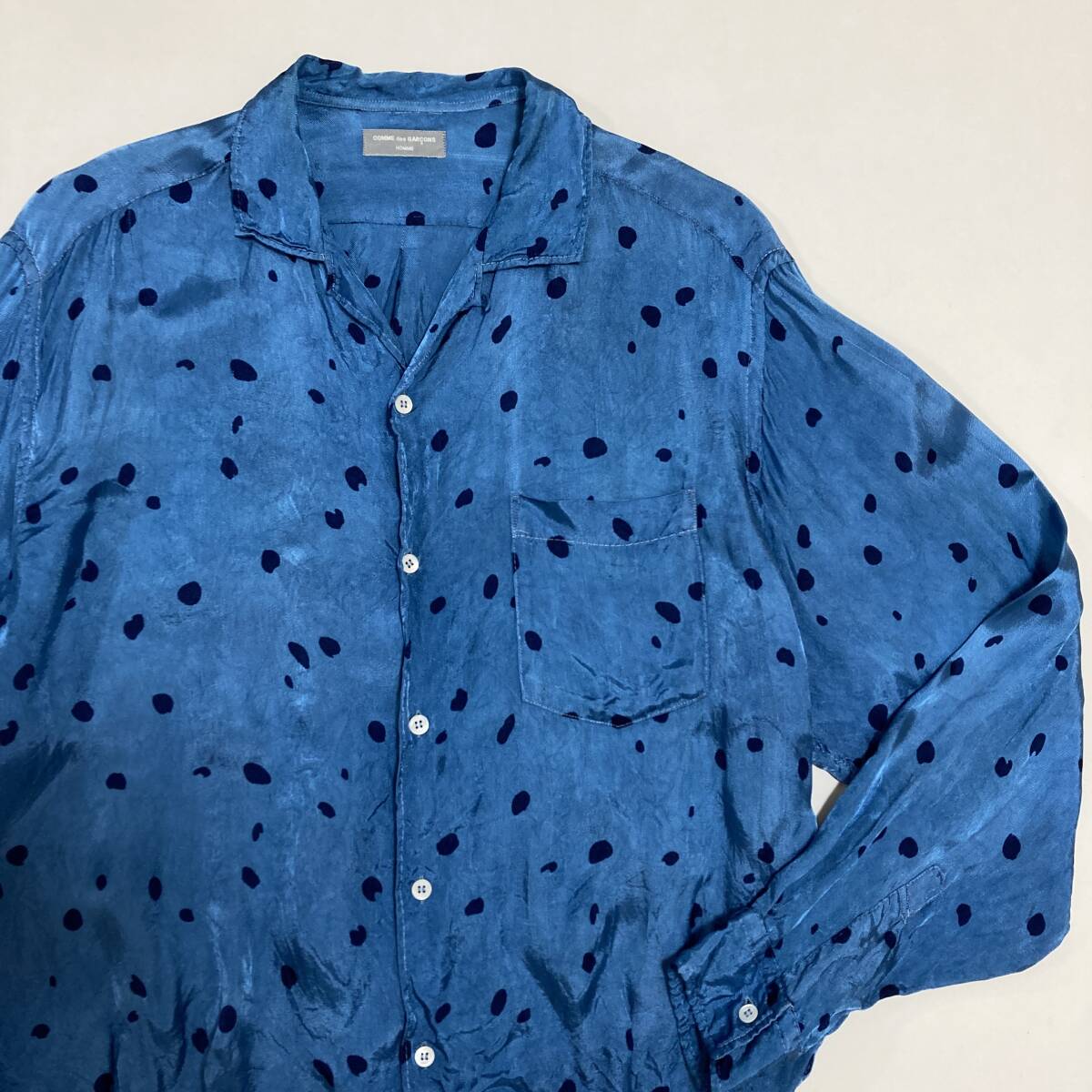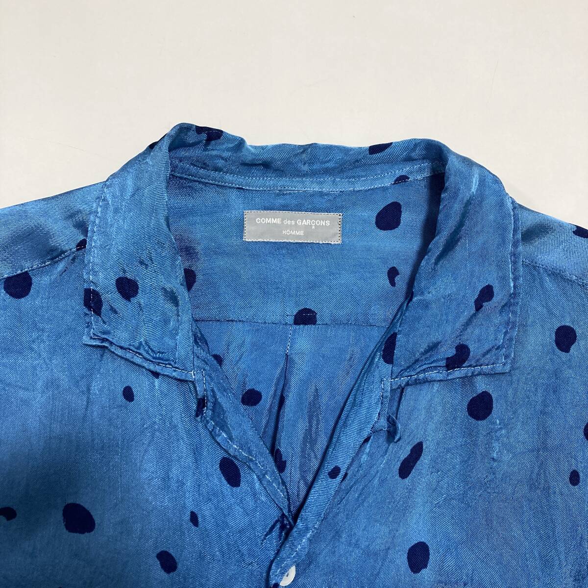 80s COMME des GARCONS HOMME レーヨン ドット オープンカラー 長袖 シャツ 青系 コムデギャルソンオム 開襟 VINTAGE archive 4100029