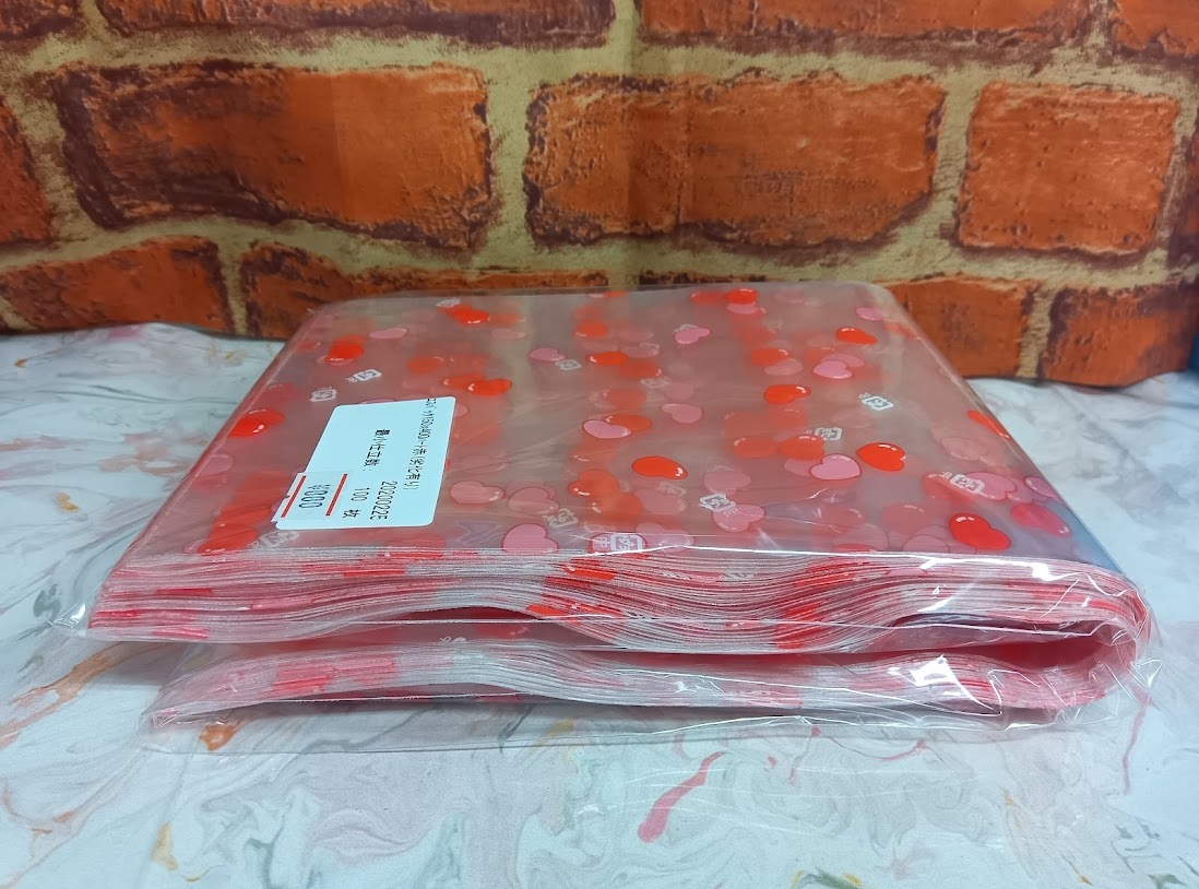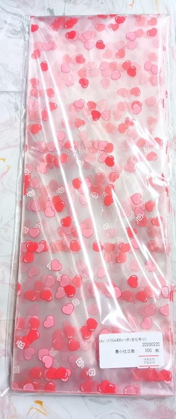 当店オリジナルの柄になります。とってもかわいいハート柄!エスパックハート柄(OPP袋) 150mm×400mm(縦長)100枚長期保管によりハート柄の残像が出現している場合がございます。アップにすると画像のような感じですが、1枚にしたり、ラッピングすると目立たないかと思います。バレンタインデー、ホワイトデー、クリスマス※工程上柄の出方が違う場合があります。※クリックポスト185円での配送は数字899になるまで同梱可能です。(こちらは1点499)