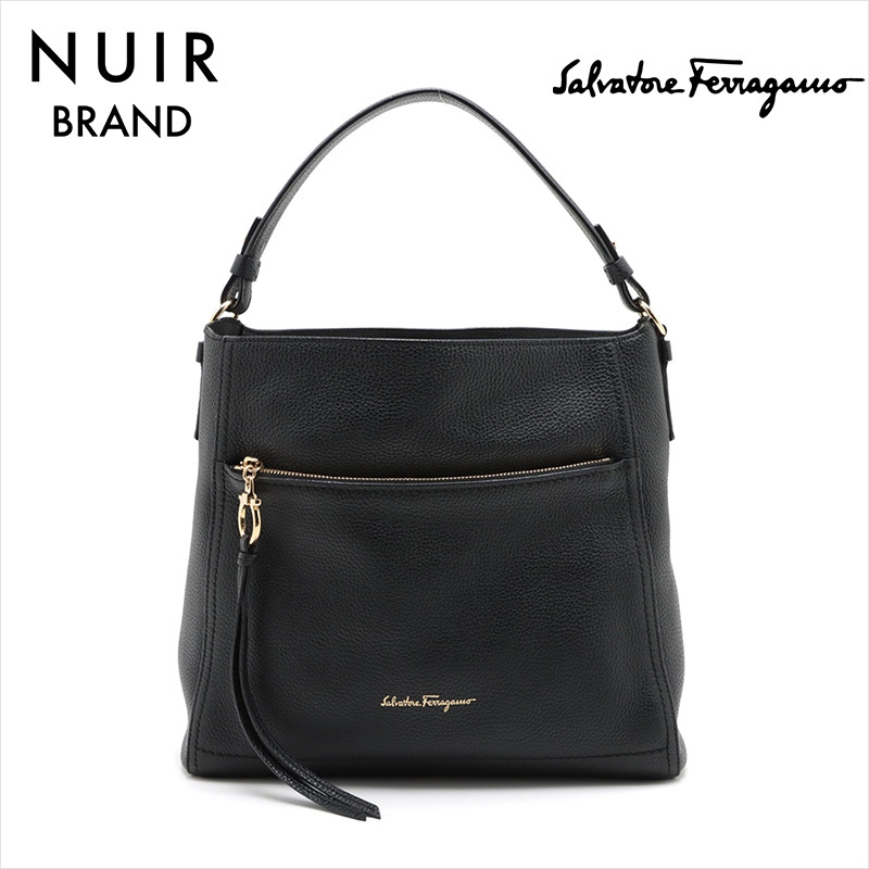 美品 Salvatore Ferragamo ガンチーニ ショルダーバッグ ブラック