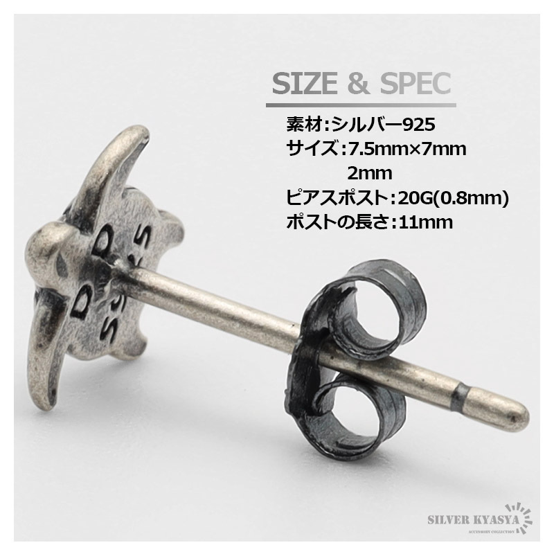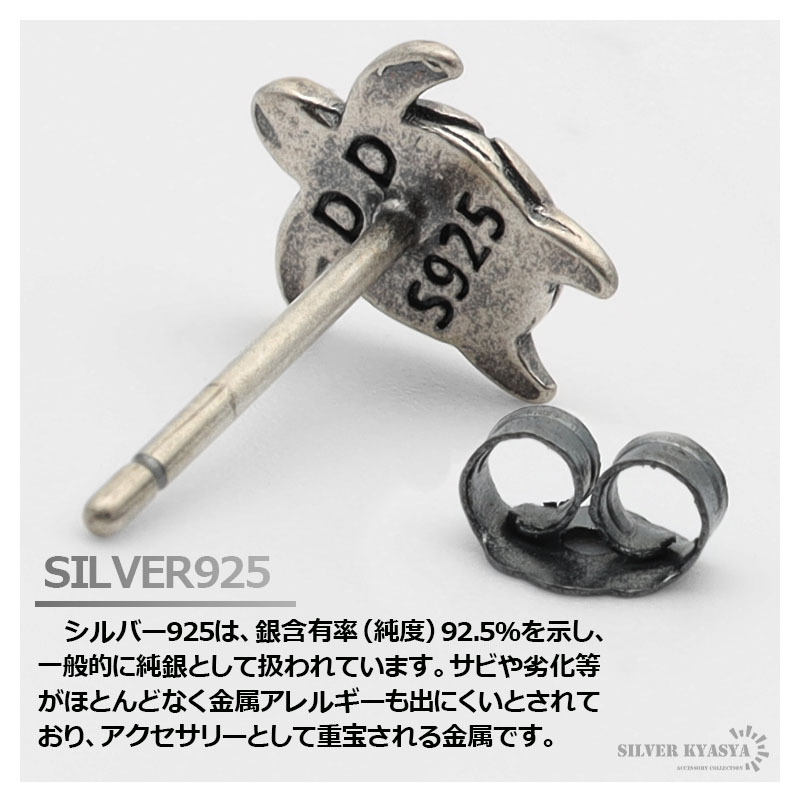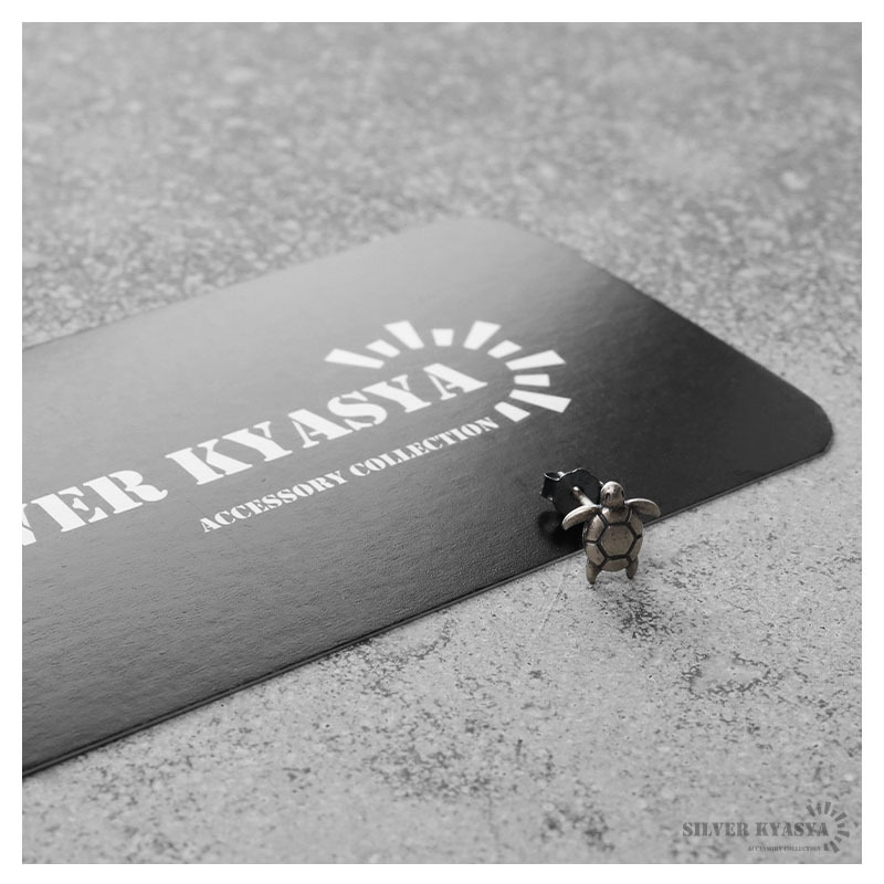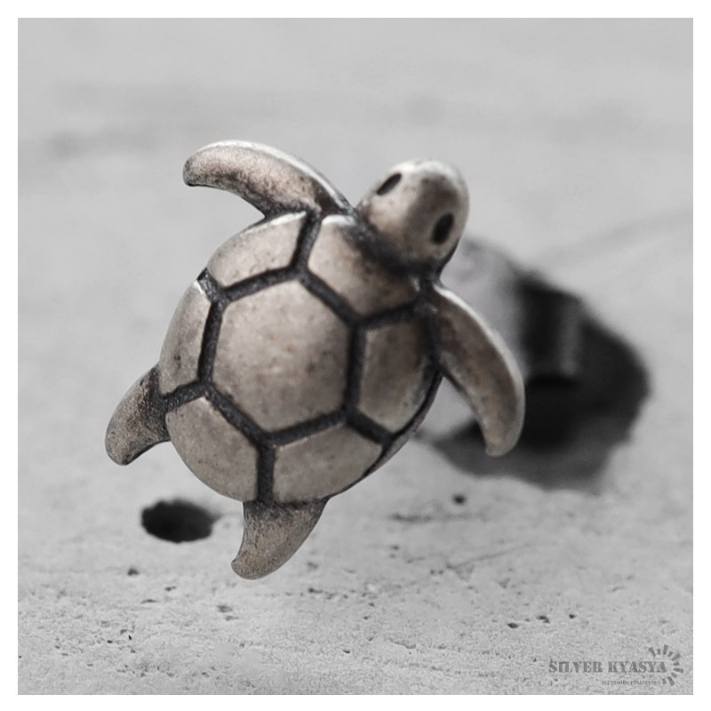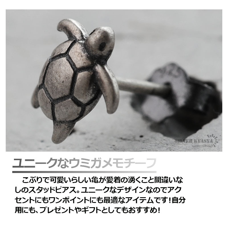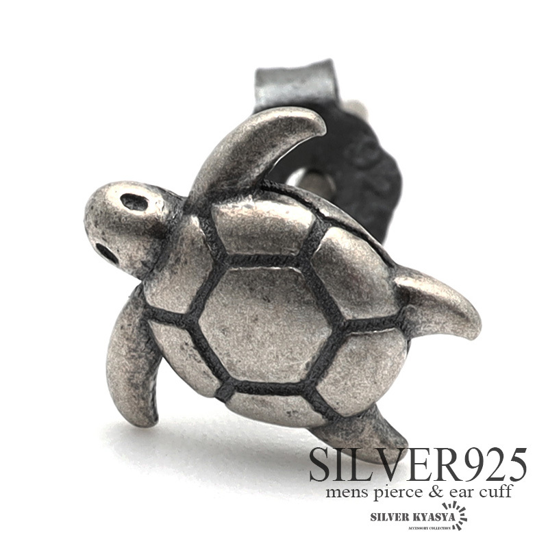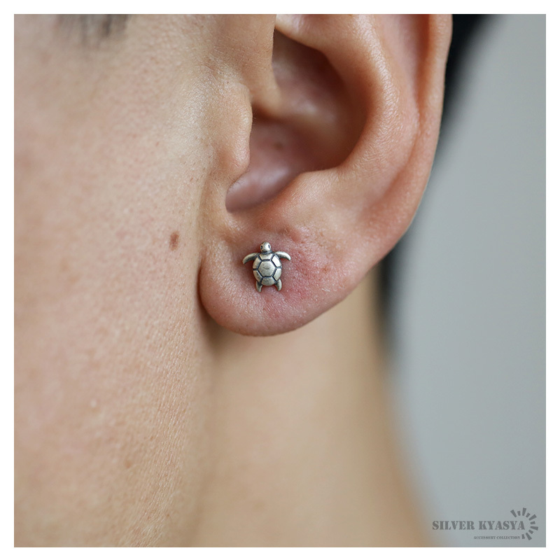 シルバー925 スタッドピアス メンズ シルバー タートルピアス 亀 ウミガメ 金属アレルギー 片耳用 1点