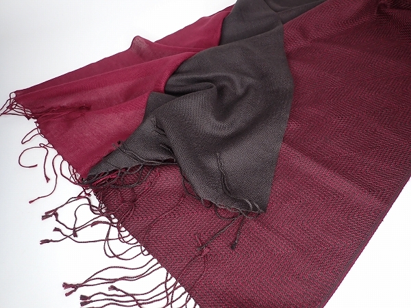 色 エンジ×チャコールグレー系 素材 シルク×カシミヤ?(記載はなく詳細は不明です) | |