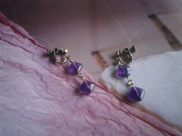 仏蘭西映画の余韻・・シリーズです♪神秘的なアメジスト・・深い紫色のアメジストのイヤリングです♪ペア1組です♪10ミリのダイヤカットのアメジストが大人のロマンチックしています♪長さは全長4・5センチ位で調節自由です♪♪ピアスにも変更出来ます♪お揃いのネックレスやブレスレットも出品しています♪ハンドメイドをご理解いただいてノークレーム・ノーリターンでお願いします♪