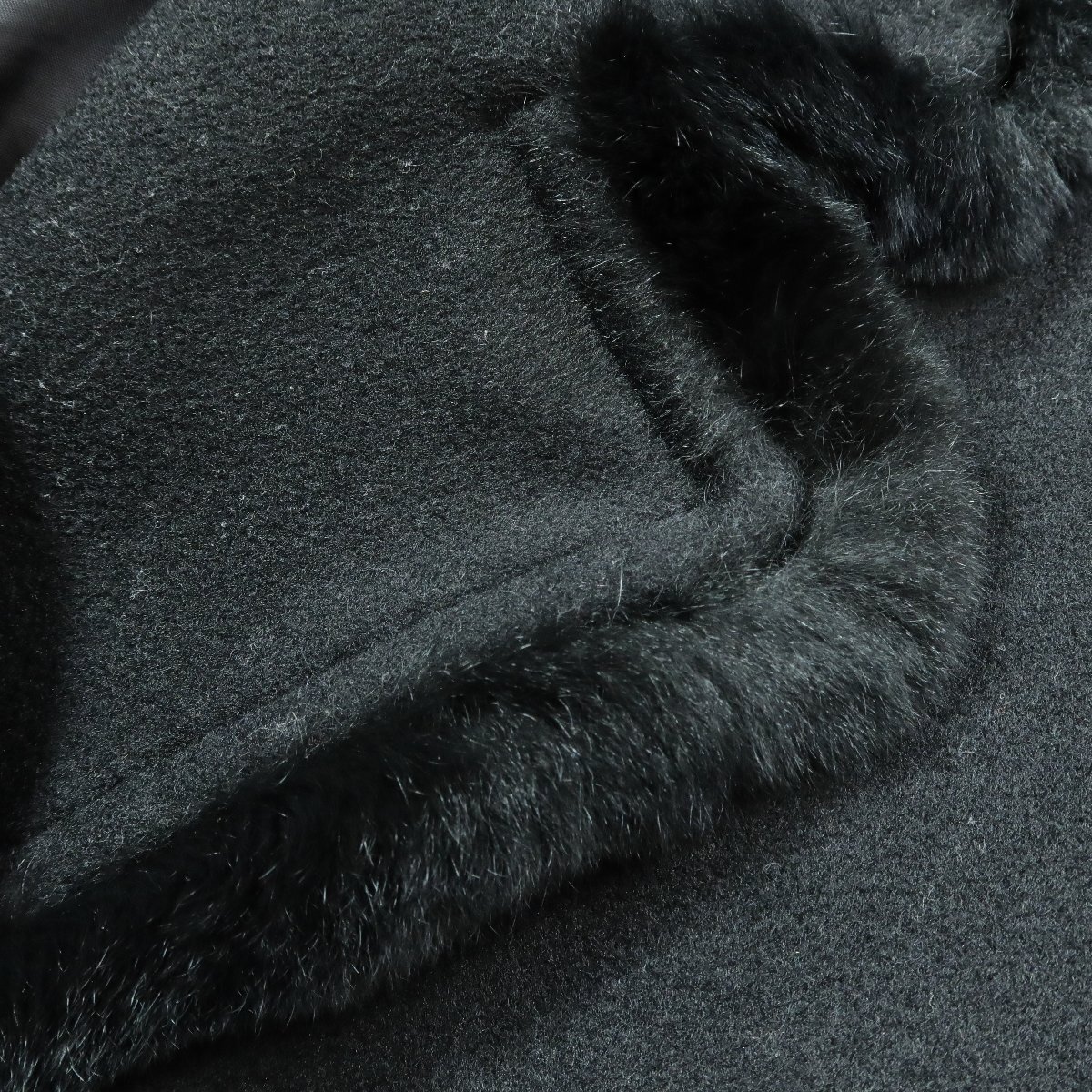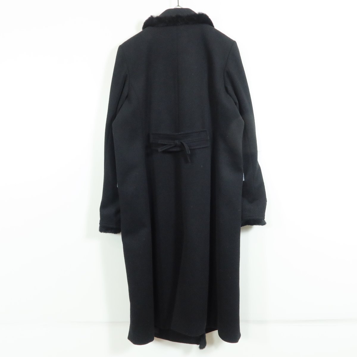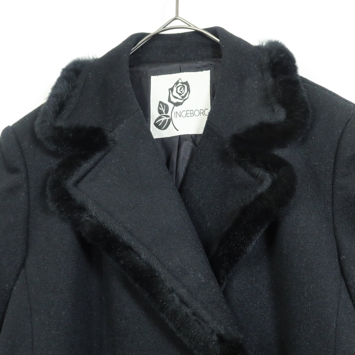 インゲボルグ★ファー付きロングコート サイズM 黒系 ウール&カシミヤ♪ラビットファー z11425