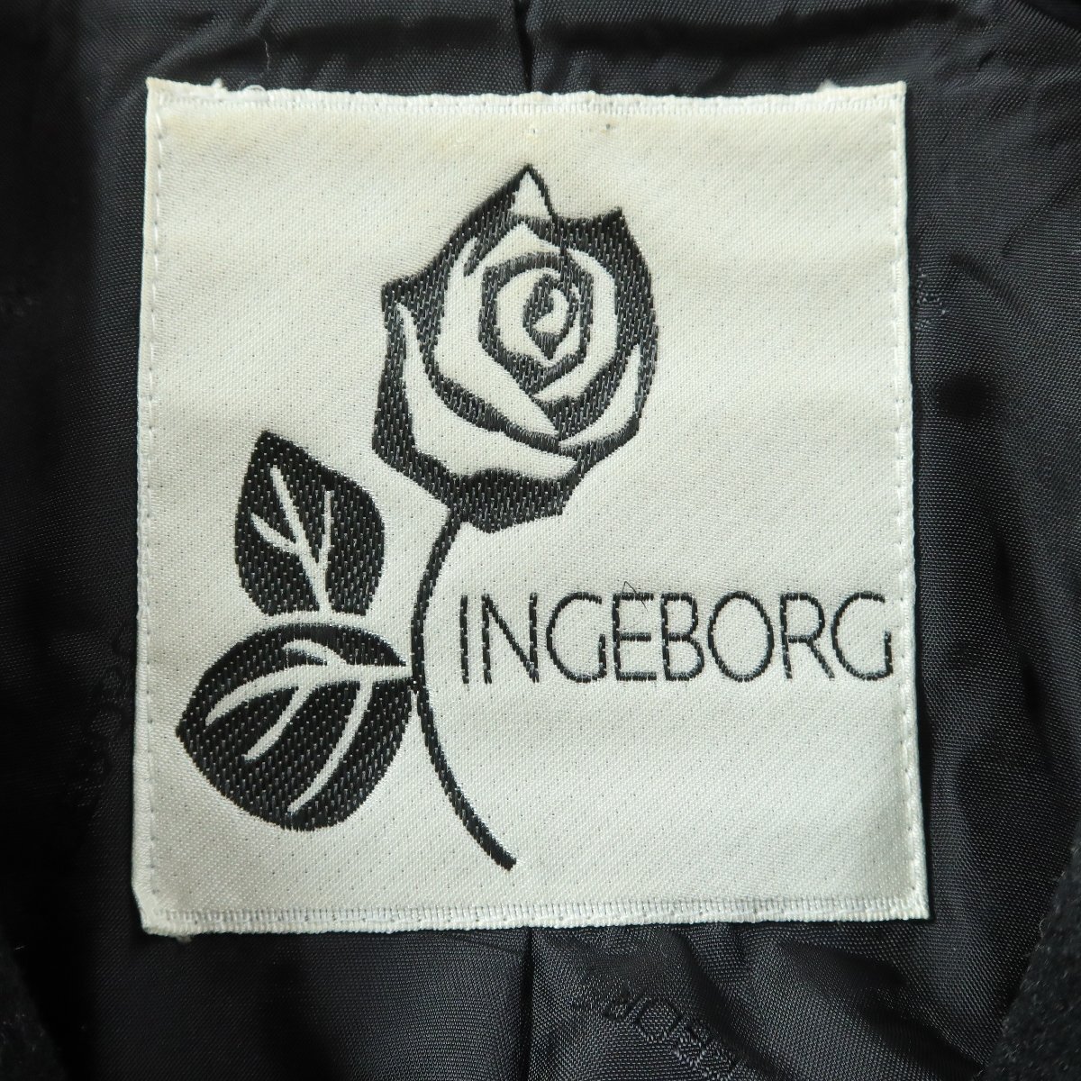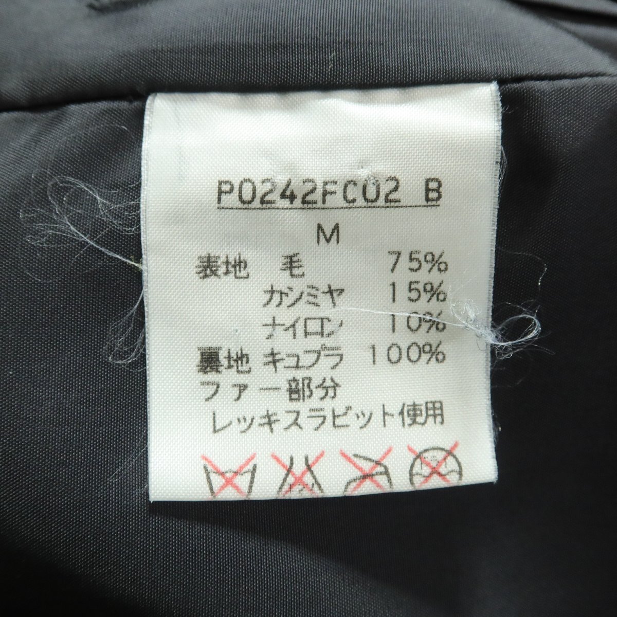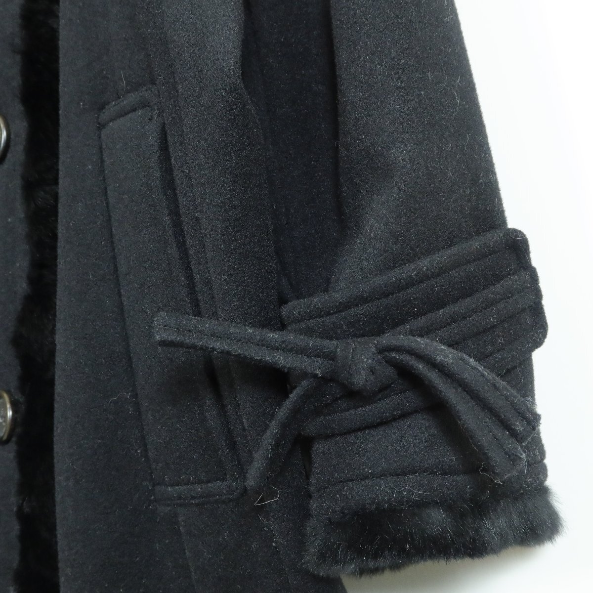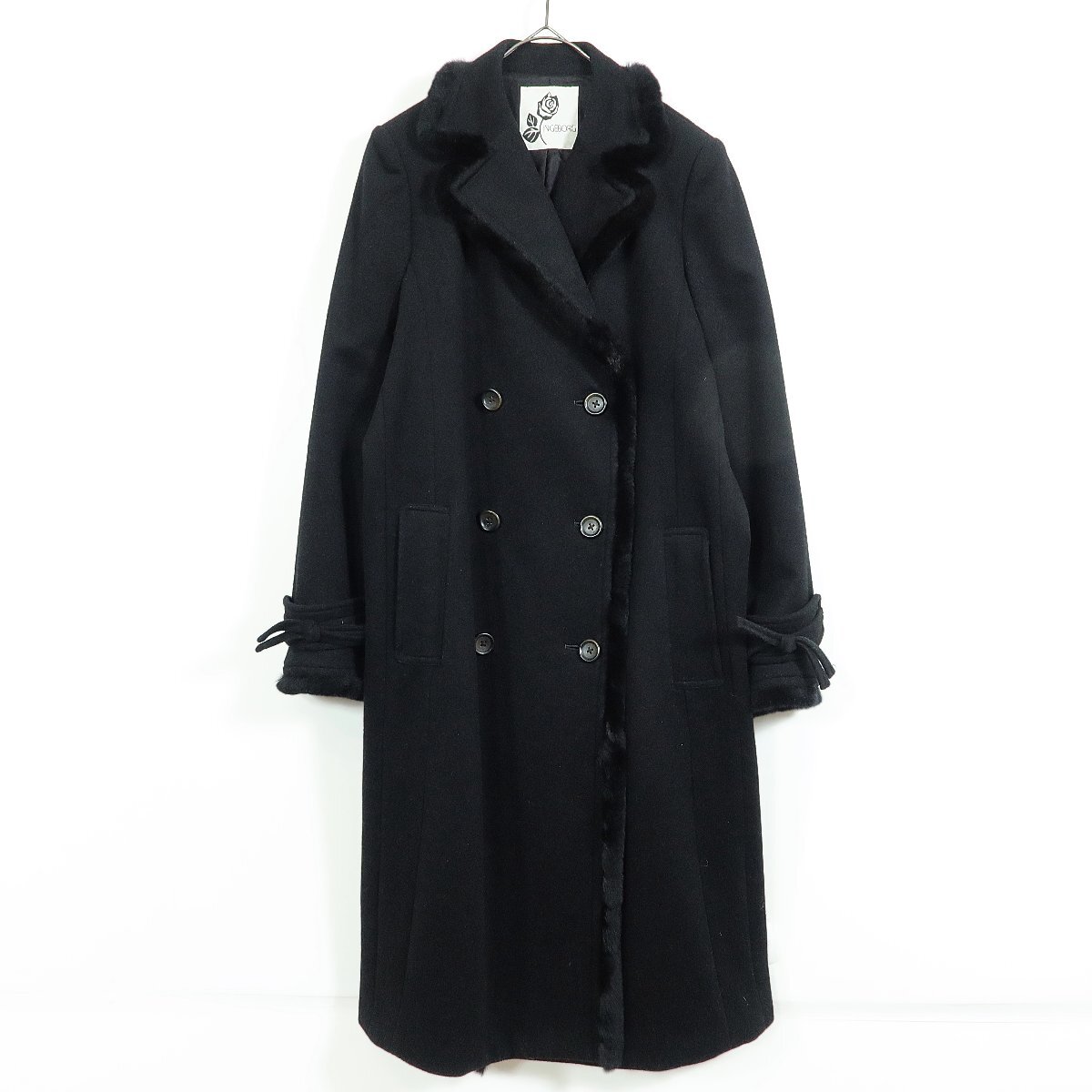 インゲボルグ★ファー付きロングコート サイズM 黒系 ウール&カシミヤ♪ラビットファー z11425