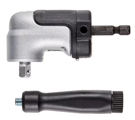 6.35mm六角軸を3/8inch(9.5mm)角へ変換しつつ、回転方向を90°曲げるアタッチメントです。