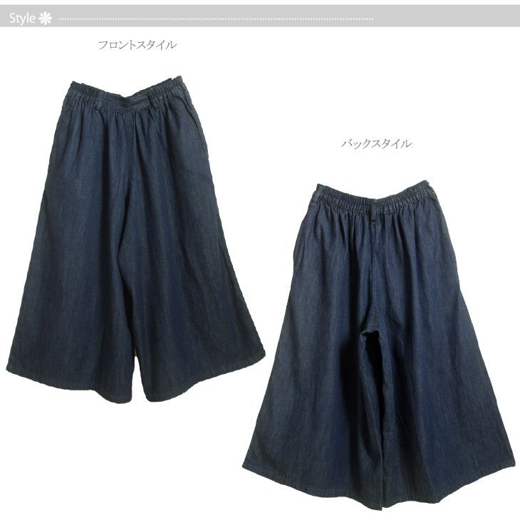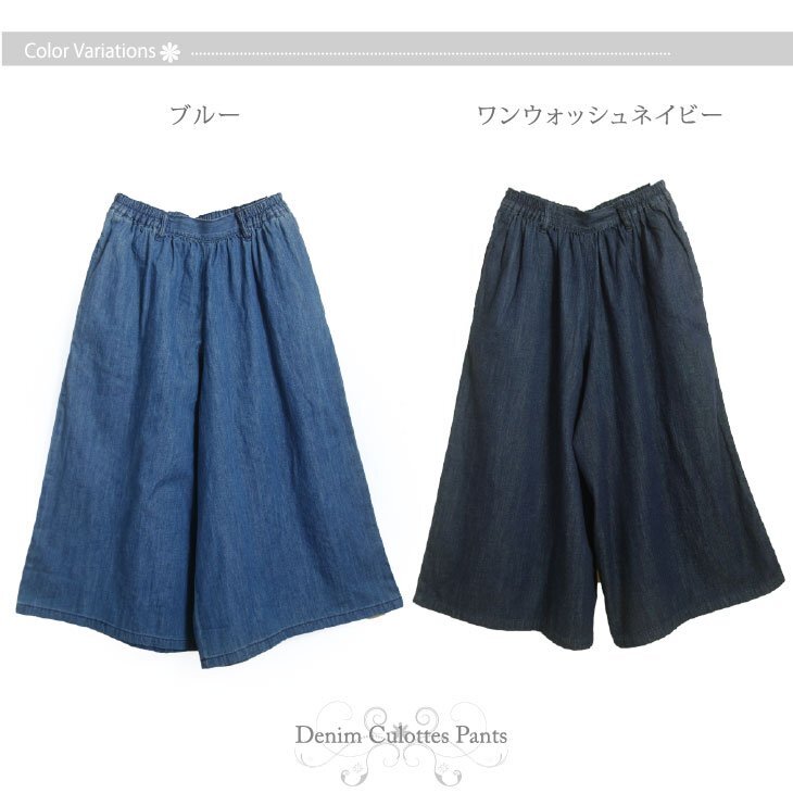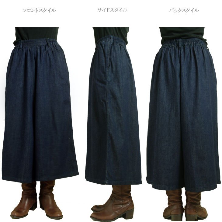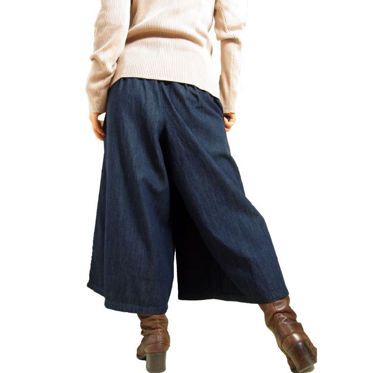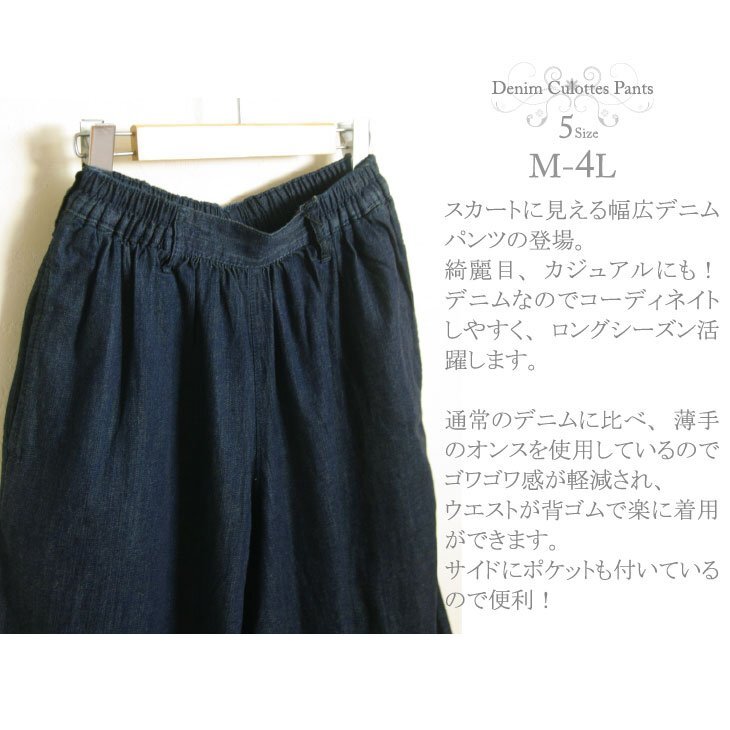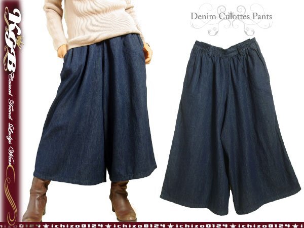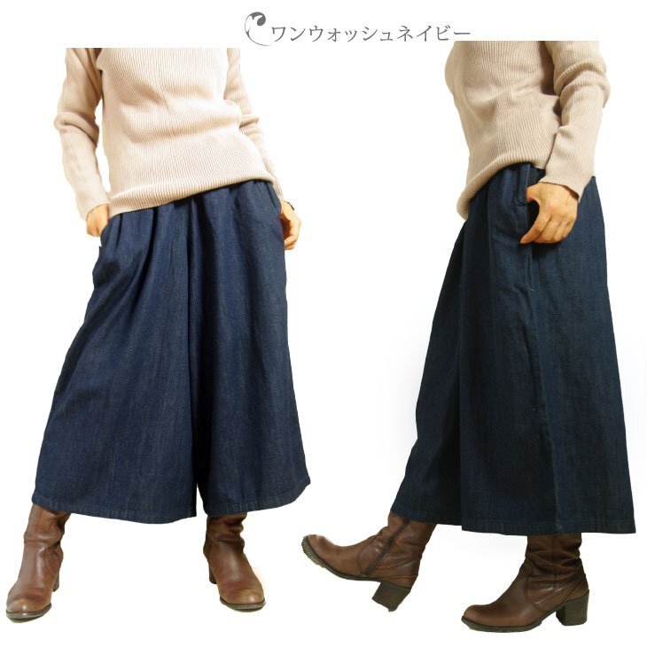 L ワンウォッシュネイビー デニム キュロットパンツ レディース ガウチョパンツ 新品