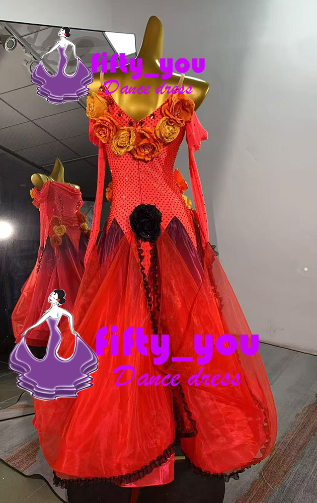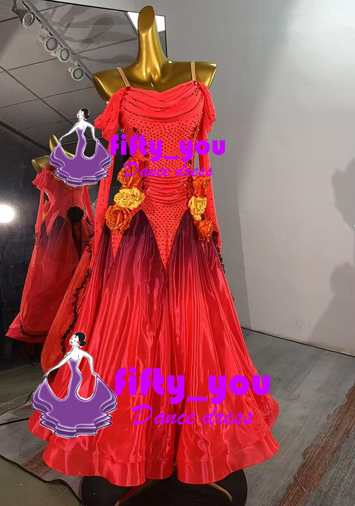 新品fifty_you レディース社交ダンス モダンドレス セミオーダー対応 スタンダードドレス  高級品 グラテーション色 お花飾り