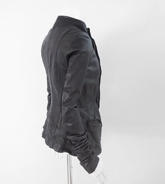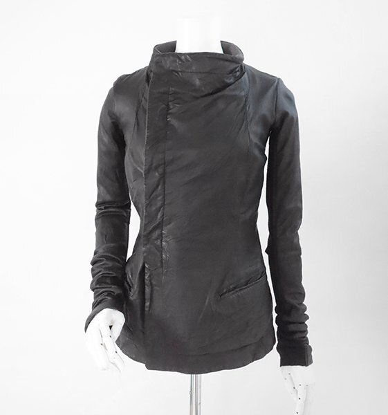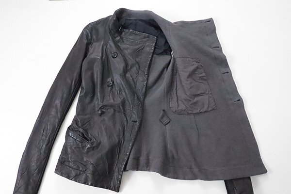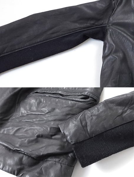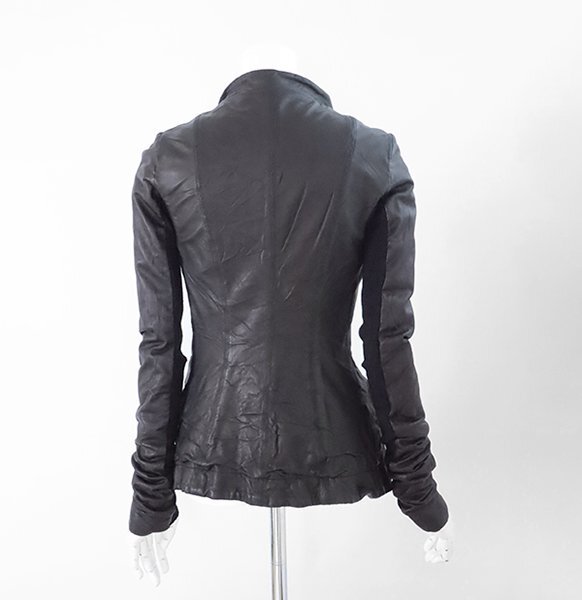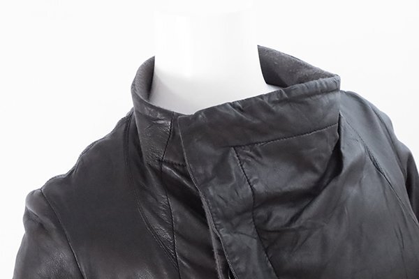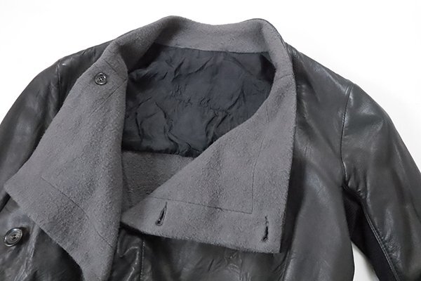未使用 Rick Owens ◆ レザー ジャケット 黒 サイズ40 (定31万円) 裏フリース ダブル スタンドカラー リブ切替 リックオウエンス ◆47/MU12