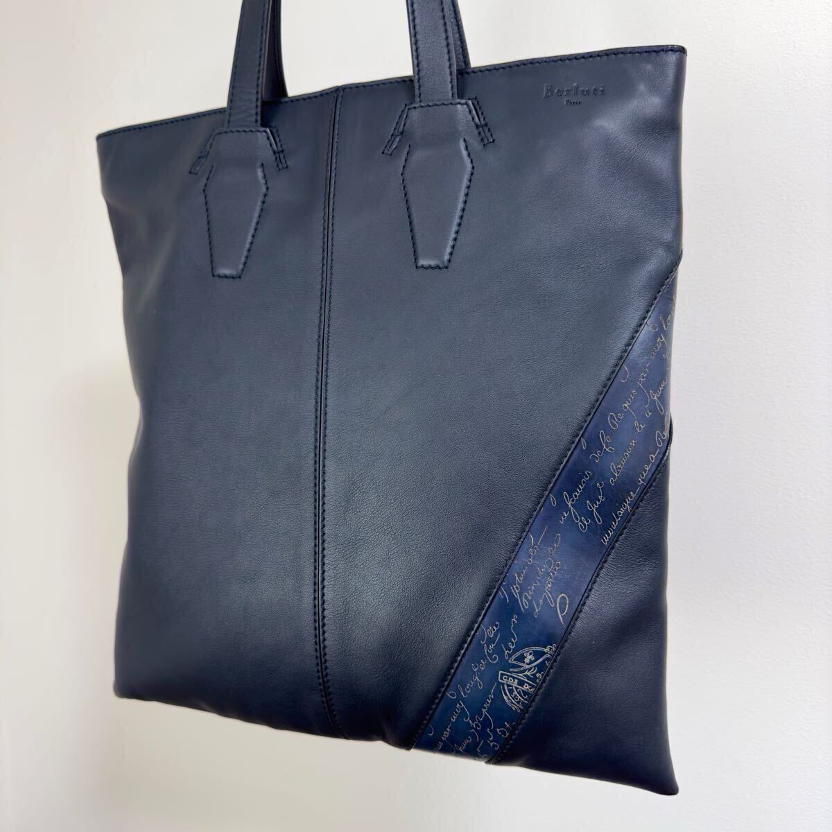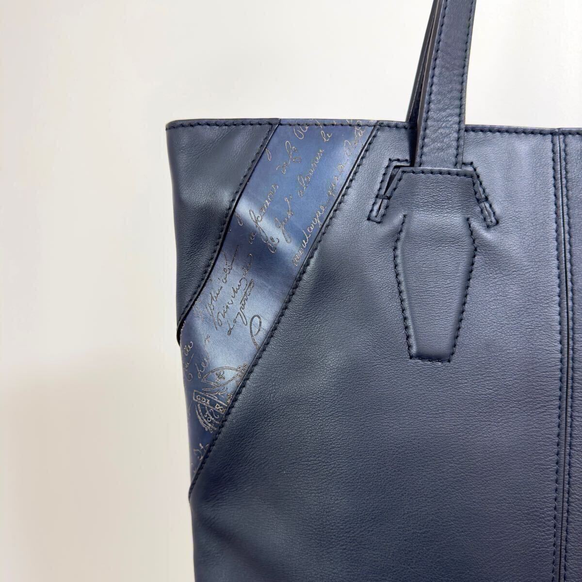 ベルルッティのシーズン現在で販売されたカリグラフィースクリットレザー パッチワーク トートバッグになります。