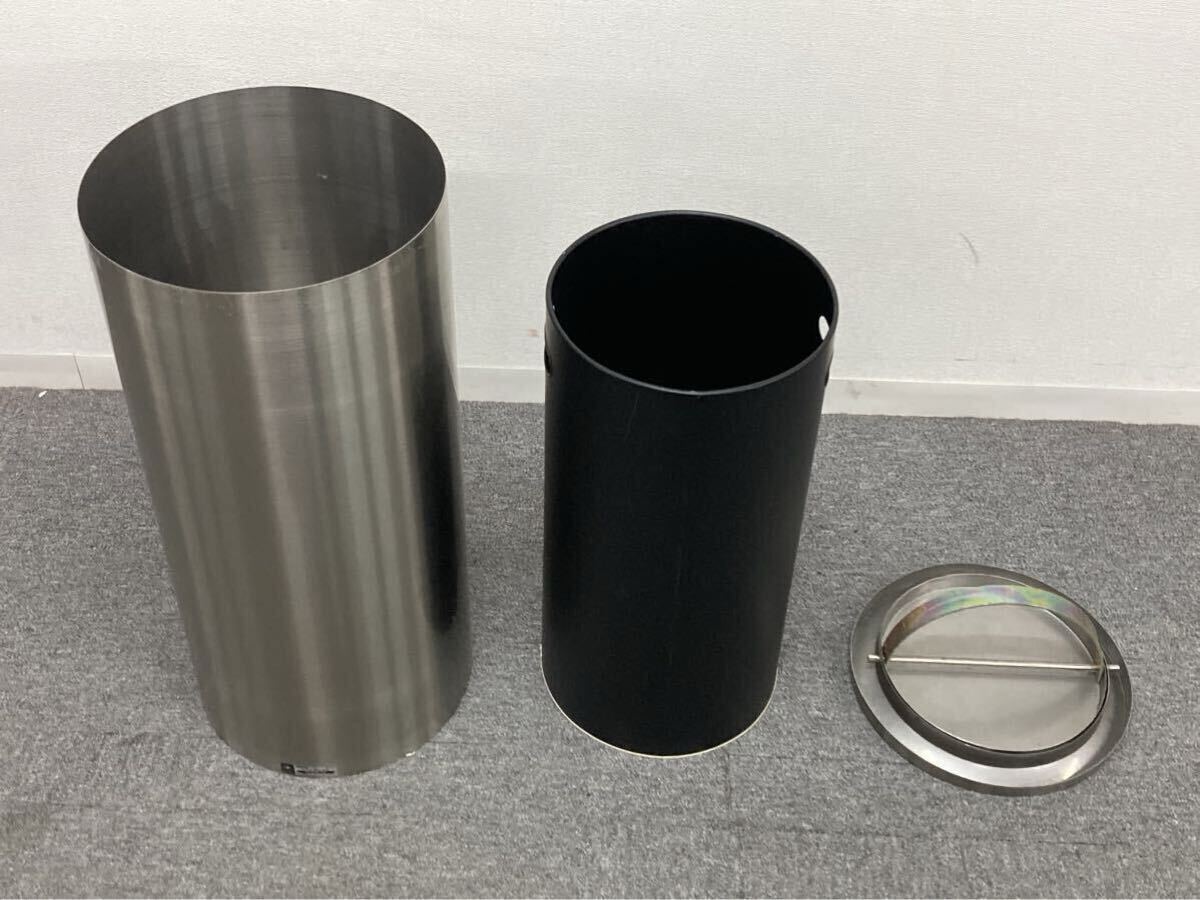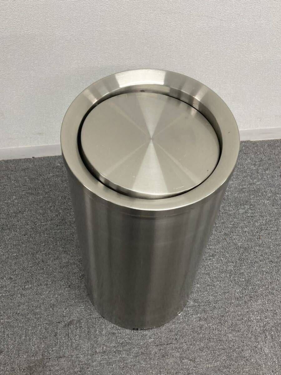 『狩) ② 中古品 【在庫複数あり】業務用 ステンレス ダストボックス ゴミ箱 シルバー 大容量 丸型 店舗用品 20240509』