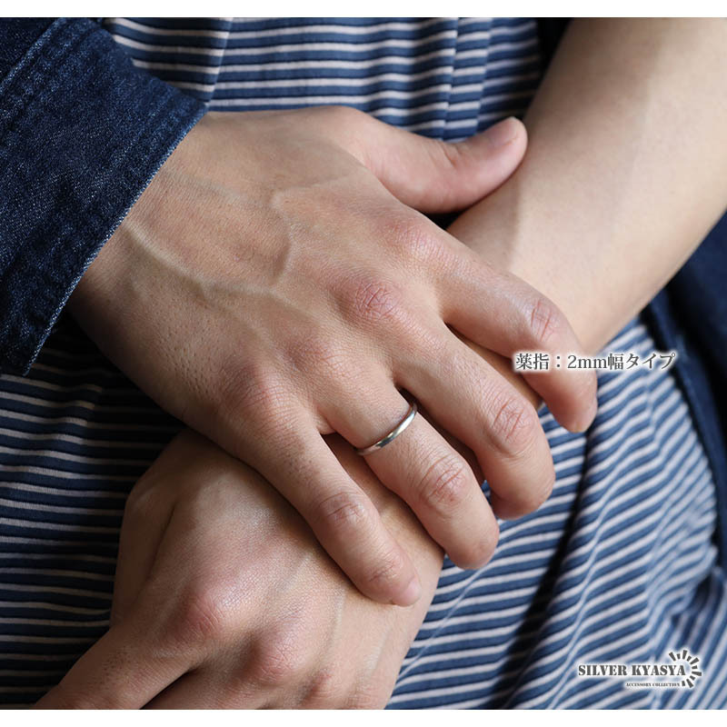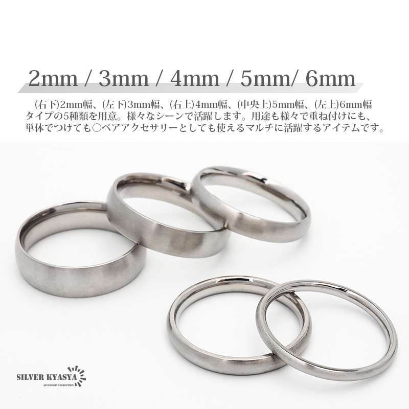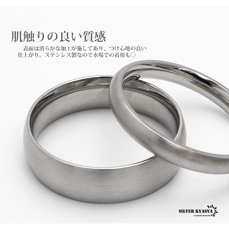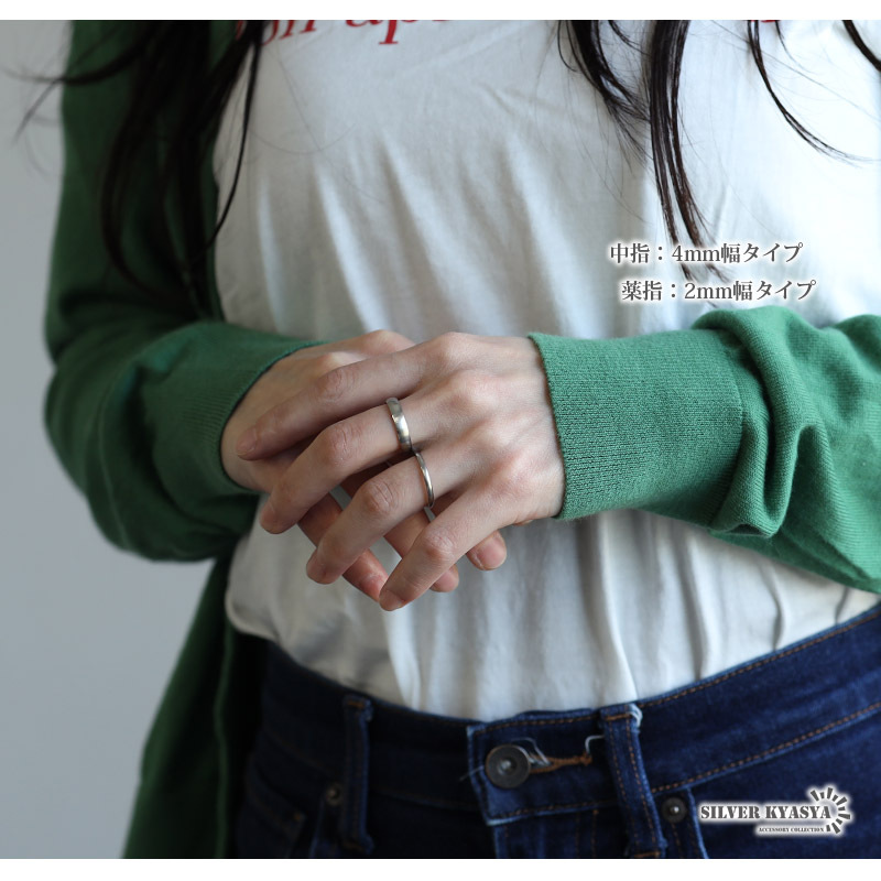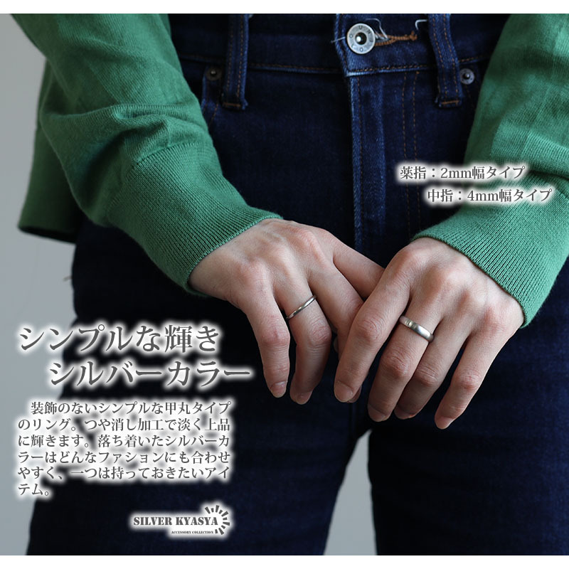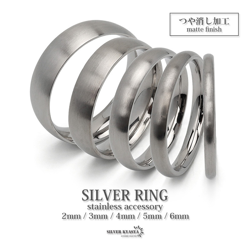 装飾のないシンプルな甲丸タイプのリング。つや消し加工で淡く上品 に輝きます。落ち着いたシルバーカラーはどんなファションにも合わせやすく、一つは持っておきたいアイテム。