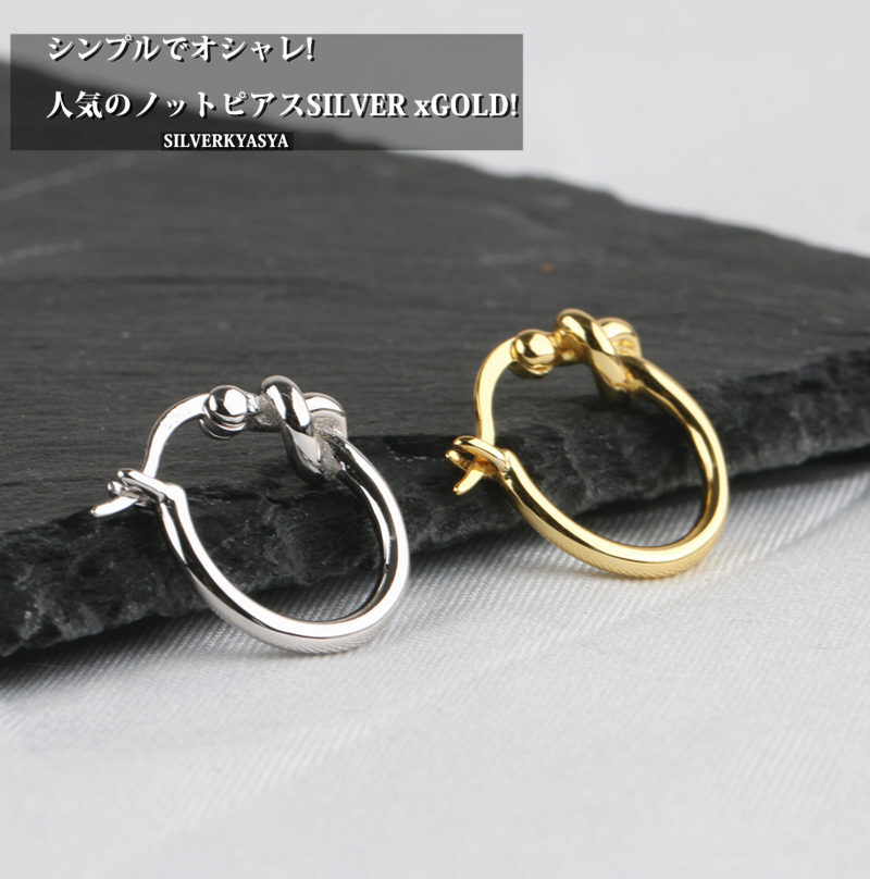オシャレなノットデザインのフープピアスGOLDxSILVER2カラー登場!