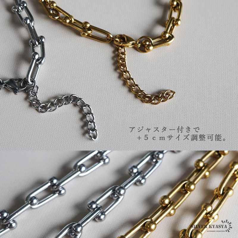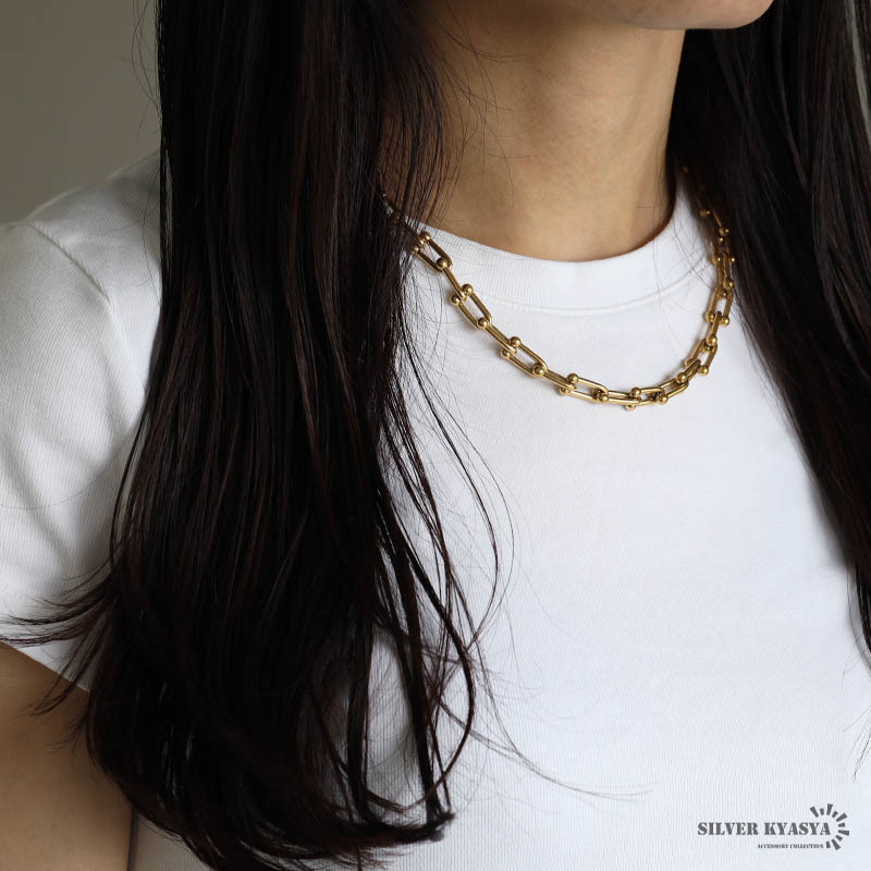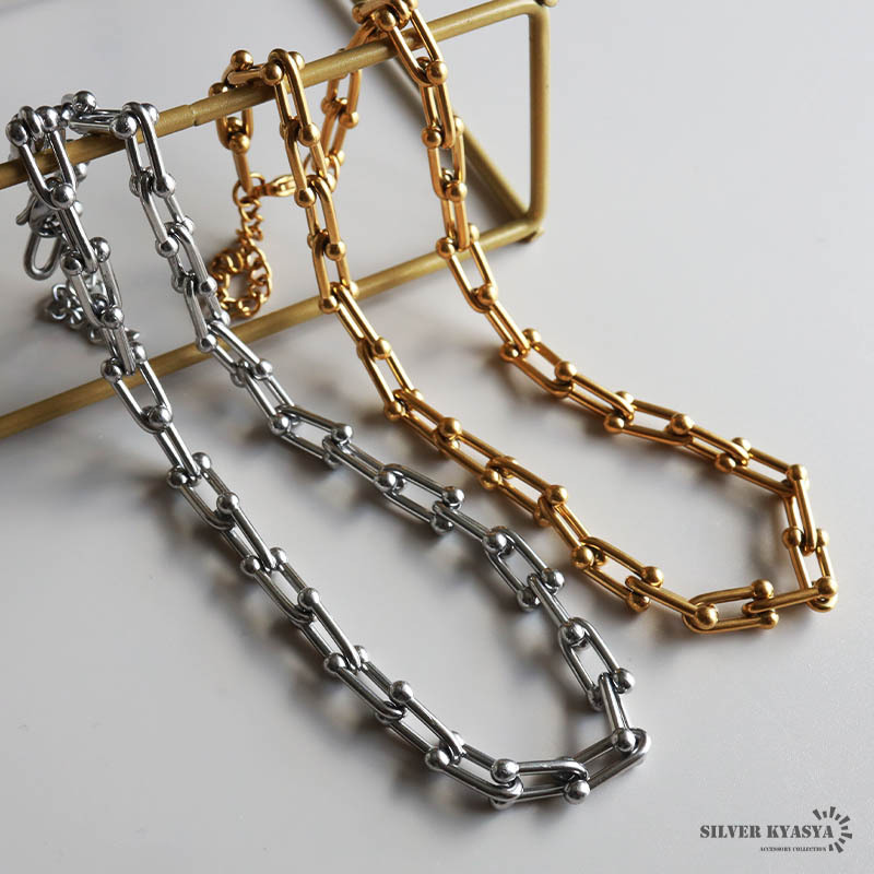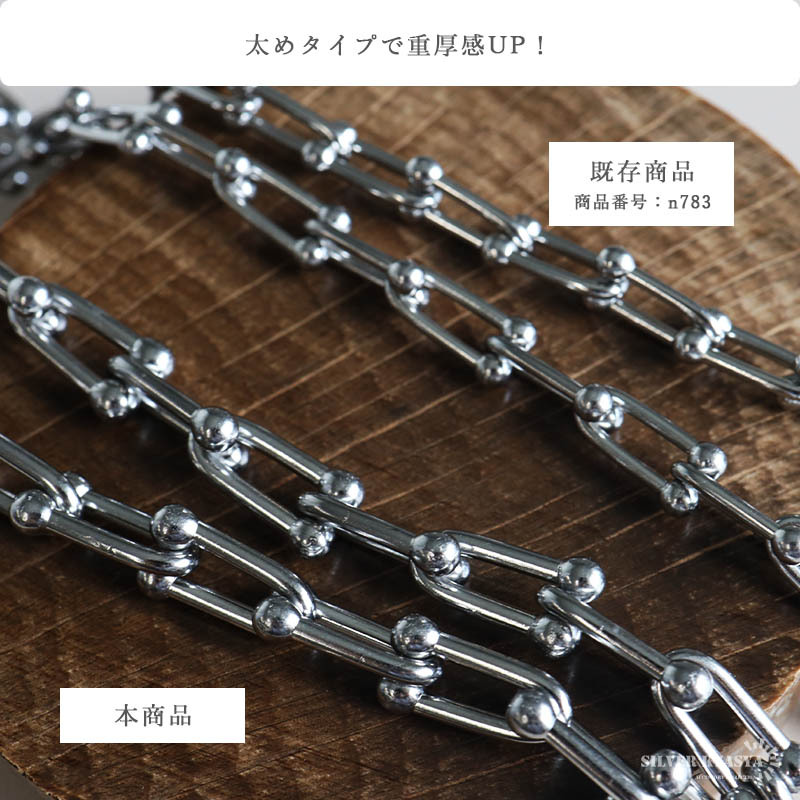 | 商品概要 | ■ITEM DETAIL お洒落なU型のチェーンネックレス。既存商品(n783)よりも太めなサイズ感で、存在感・重厚感UPの仕上がりです。ファッションに取り入れやすいアイテム。 ■ステンレス素材を使用 金属部分は頑丈なことで知られるステンレス素材を採用。耐久性はもちろん耐水性も高く水場での着用も可能。金属アレルギーも出にくいとされている金属です。 |