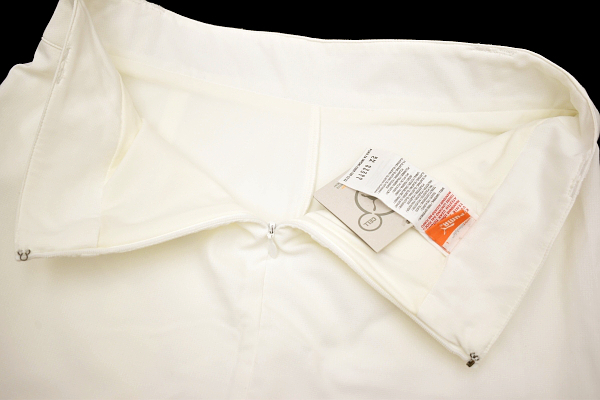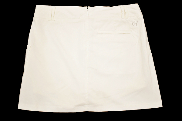 ホワイトカラー ストレッチ素材 吸水速乾 テックスカート 後ろファスナーあり 前スリットあり 内側インナーショーツあり ゴルフ テニス スポーツ 左前裾ブランドロゴ刺繍あり 下げ札あり