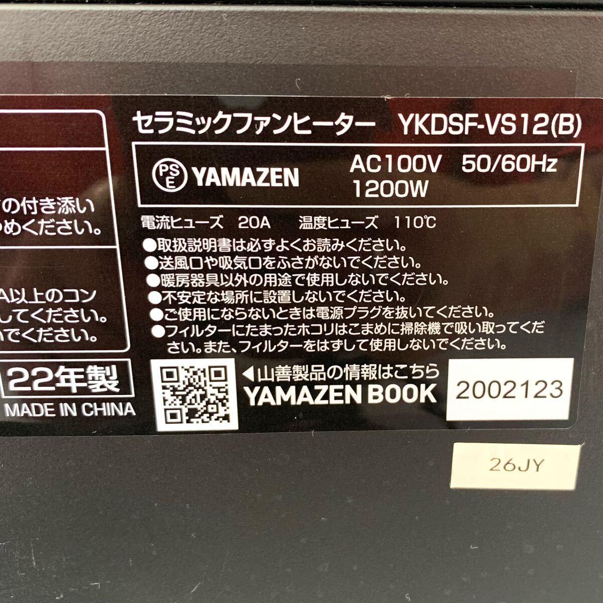 YAMAZEN 2022年製 セラミックファンヒーター YKDSF-VS12 ブラック 手渡し可 領収書発行可 【埼玉県より発送】 |