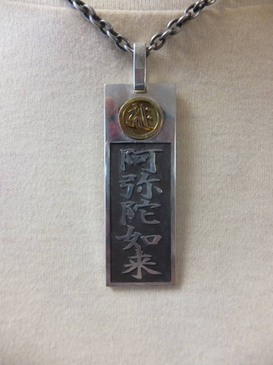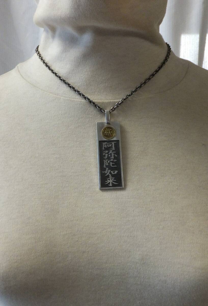 ◆喧嘩札◆「阿弥陀如来」シルバー/真鍮 ペンダント お守り 梵字 総重量約39.82g