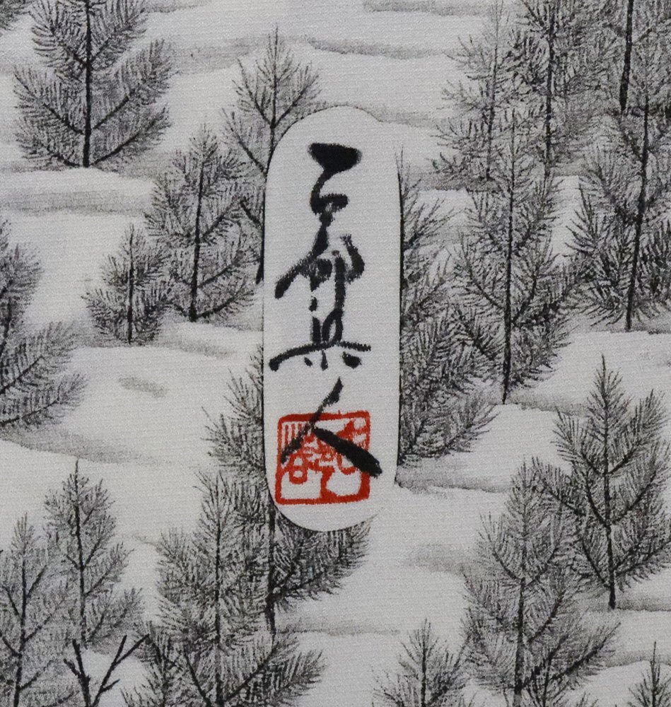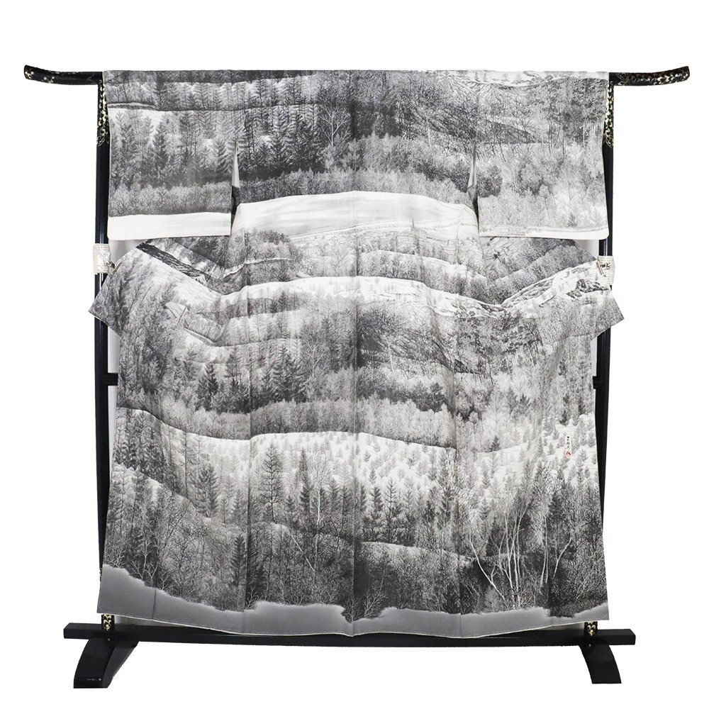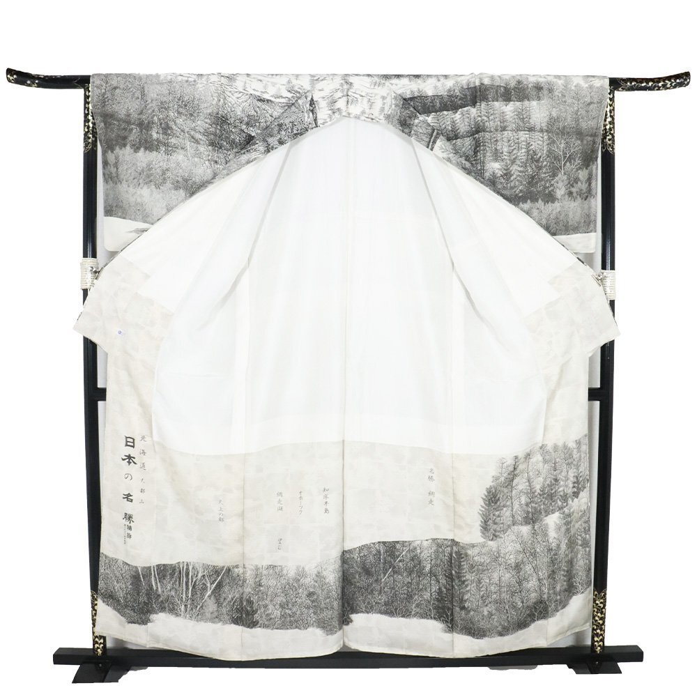 | 古都染人 山岡古都氏作 日本の名勝 北海道 天都山 特許二八三二六六四号 天井の都 網走湖・オホーツク・知床半島・名勝網走 望む 訪問着 袷 濱縮緬地 白(白色)・墨黒(黒緑色)地 164 広襟 13号 作家落款入り 特許番号あり 逸品 仕付け付き | |