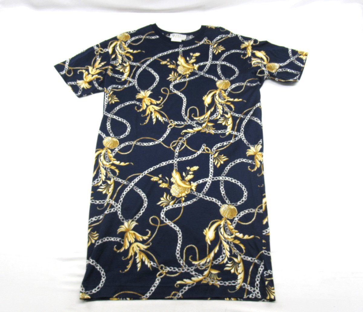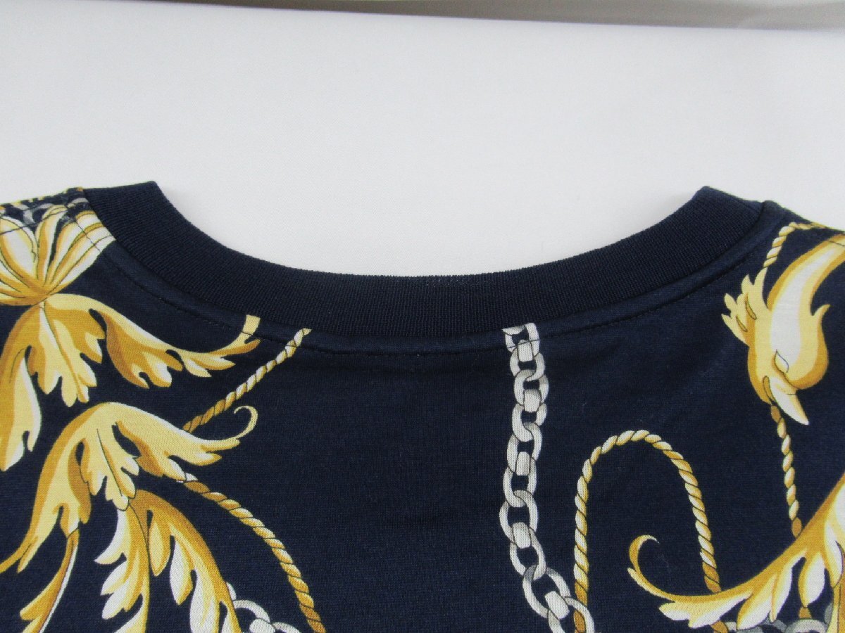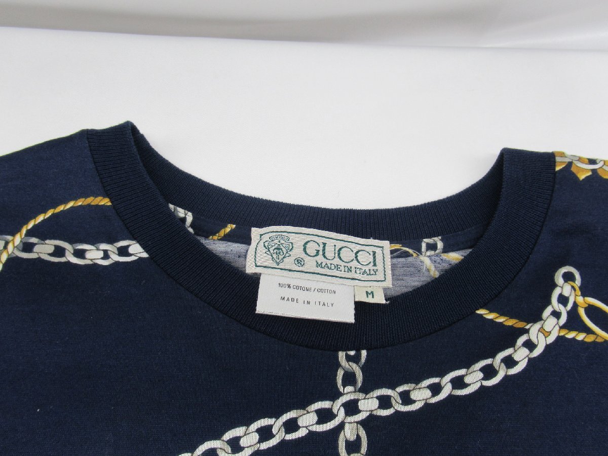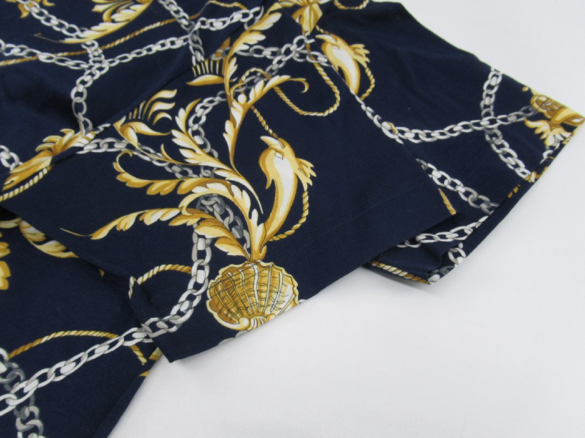 ☆☆【B送900円】1388 Gucci グッチ シャツワンピース 半袖 ひざ上丈 コットン100% イタリア製 ネイビー×柄 紺 コン M