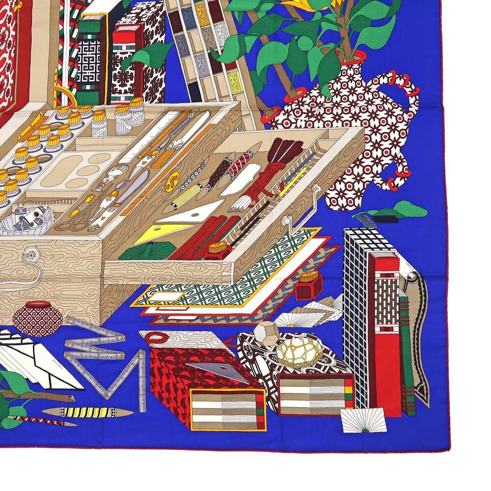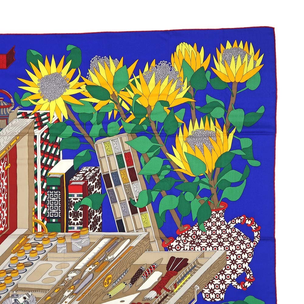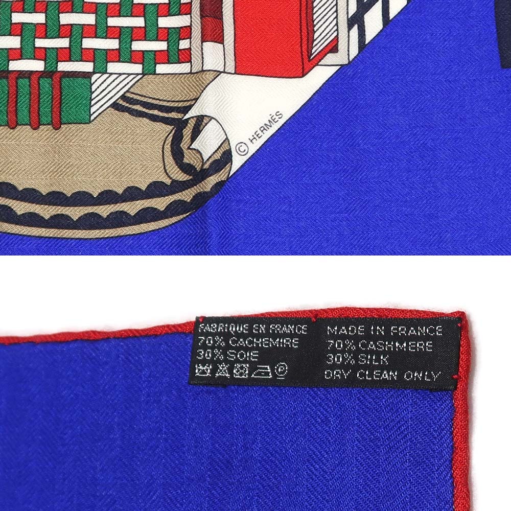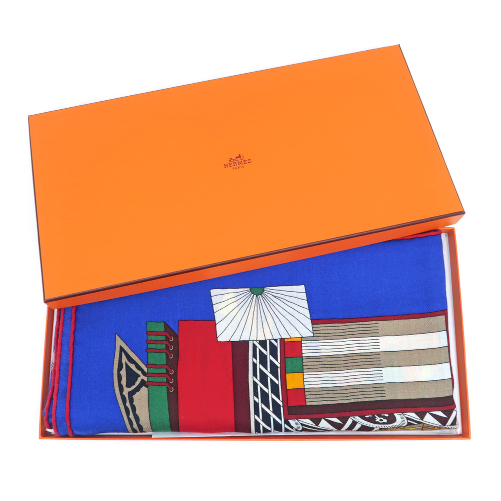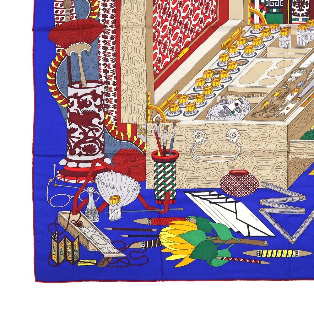 【名東】エルメス カレ 140 LES TRESORS D UN ARTISTE スカーフ カシミヤ シルク ブルー系 小物 レディース その他【未使用】