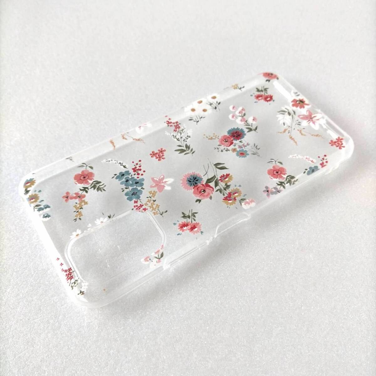 絵柄はたくさんの花柄が描かれております。ピンクを基調に綺麗に描かれ、かわいいケースとなっております。