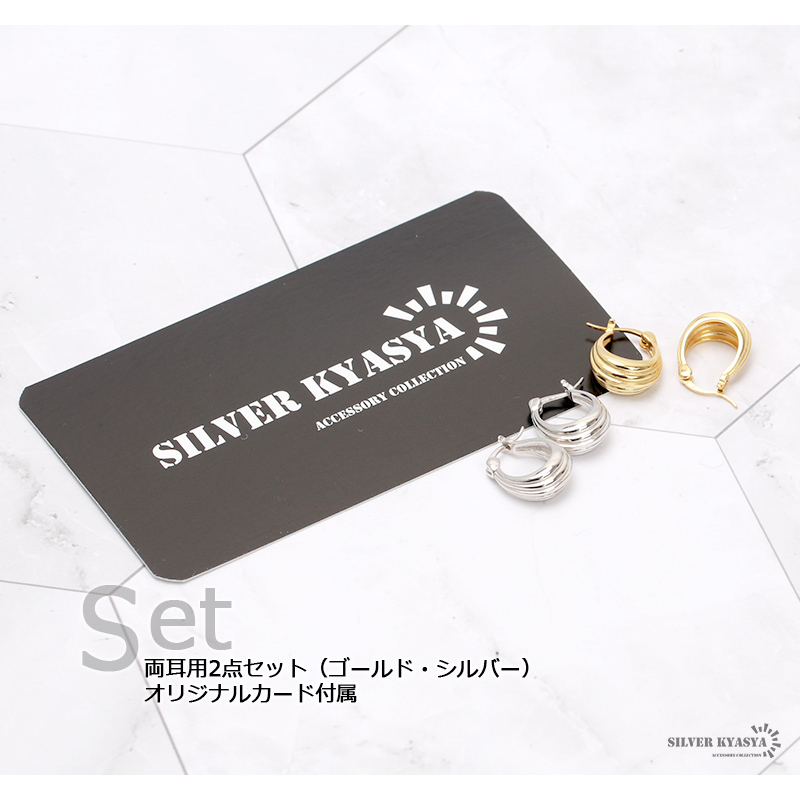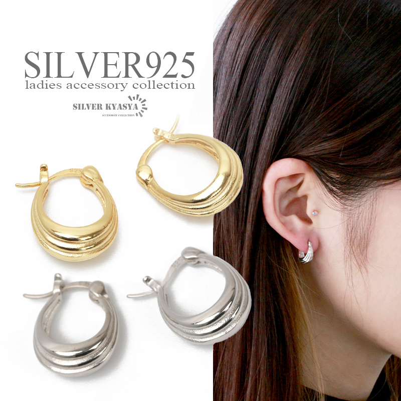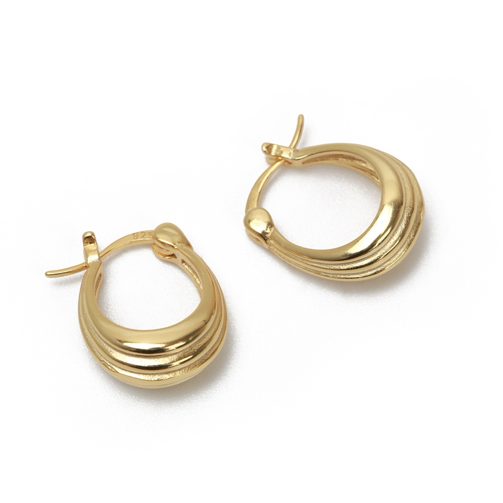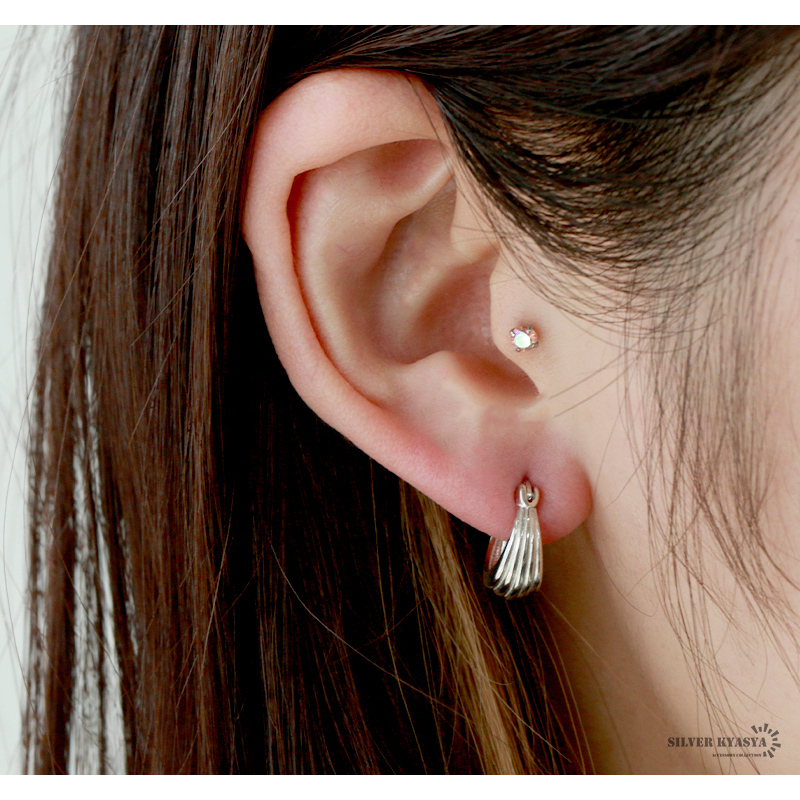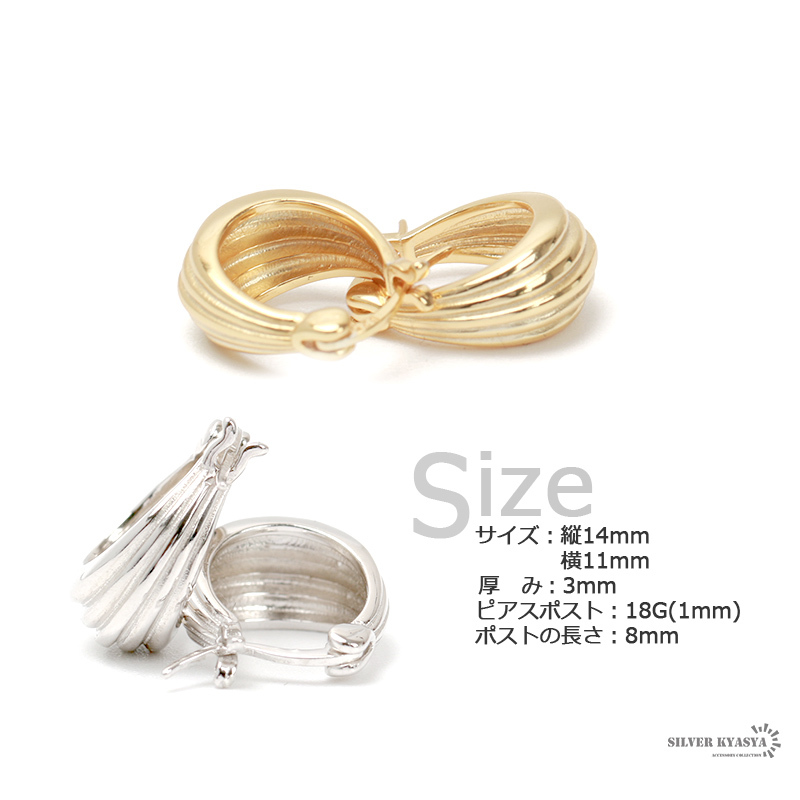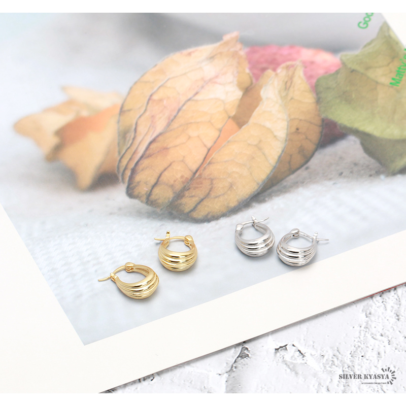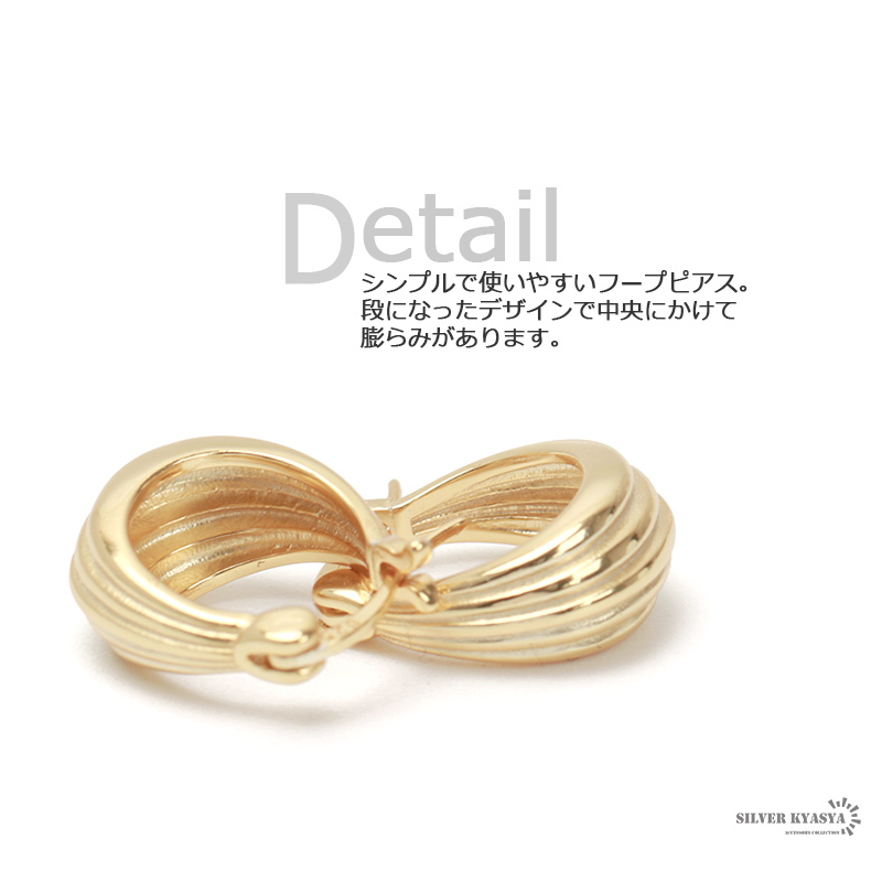 シンプルで使いやすいフープピアス。段になったデザインで中央にかけて膨らみがあります。