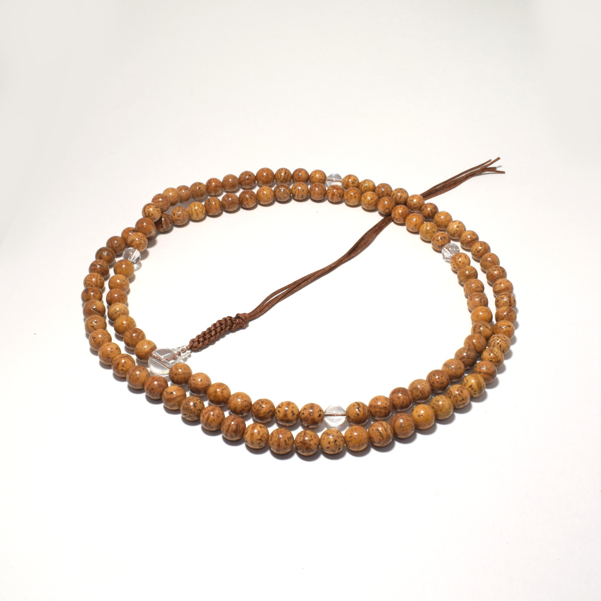 商品説明 | 主玉(龍眼菩提樹) 約 11mm 天玉(水晶) 約 10mm 親玉(水晶) 約 14mm 輪の引き伸ばしサイズ 約 60cm |