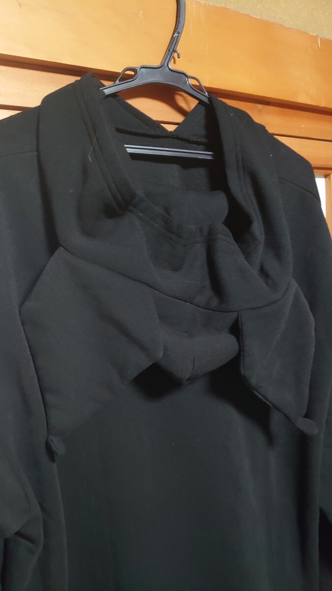一般的なパーカー素材で作られており、カジュアルな日常使いに最適です。フードには耳が付いており、可愛らしさをプラスしています。