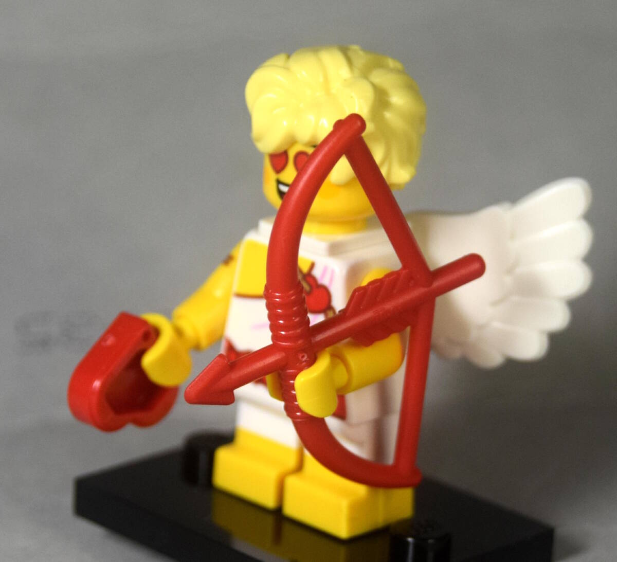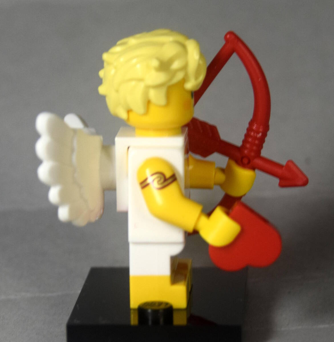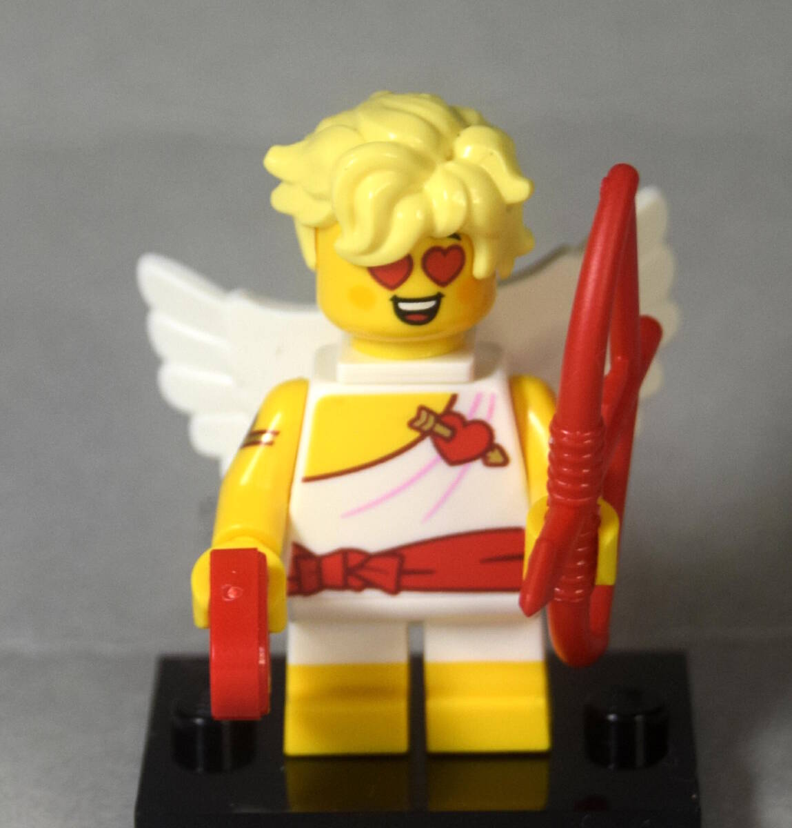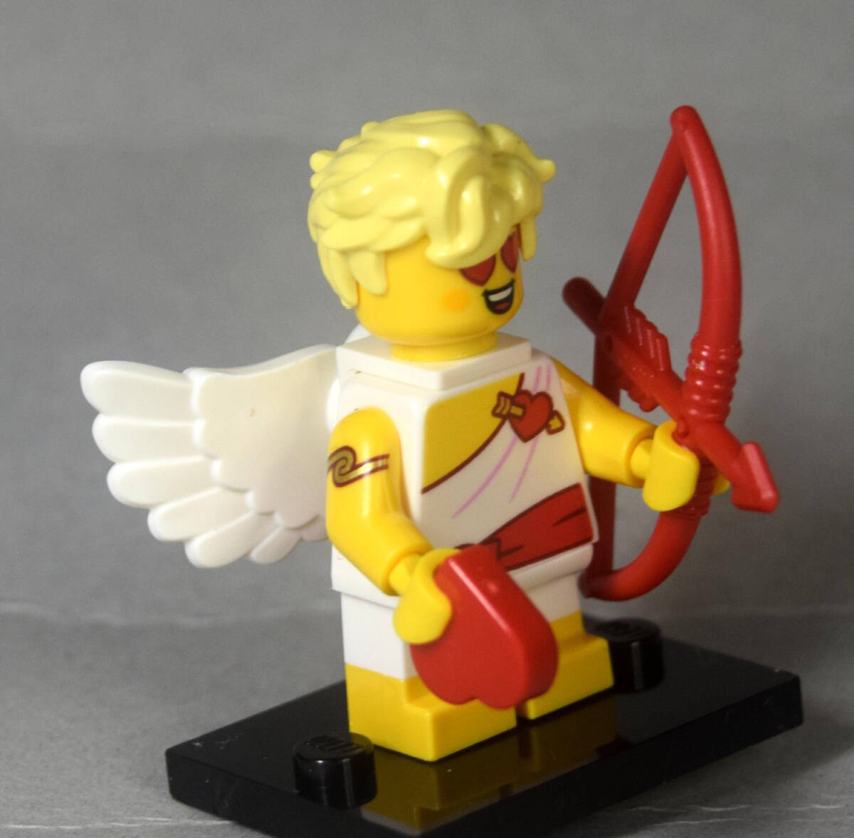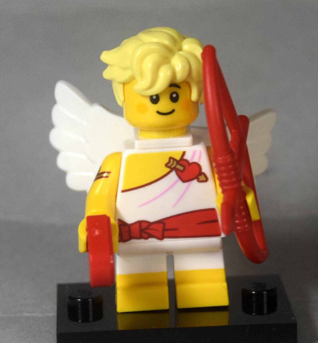 レゴ LEGO ミニフィグ 71048 シリーズ27から 12番 「天使・エンジェル・キューピッド」です。ハートの部品と赤い弓が付属します。首を反対側にまわすと「眼がハート」の顔になります。