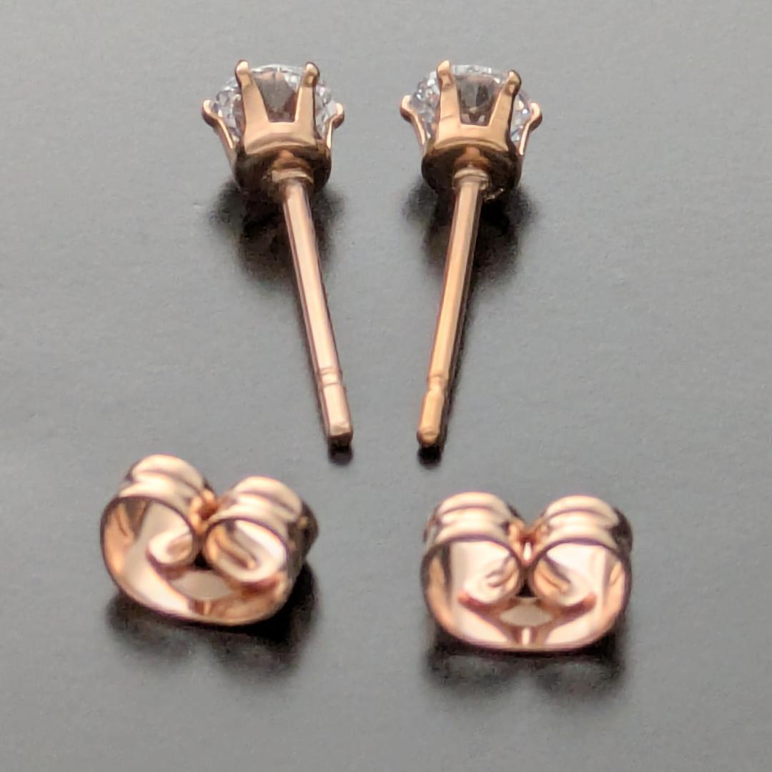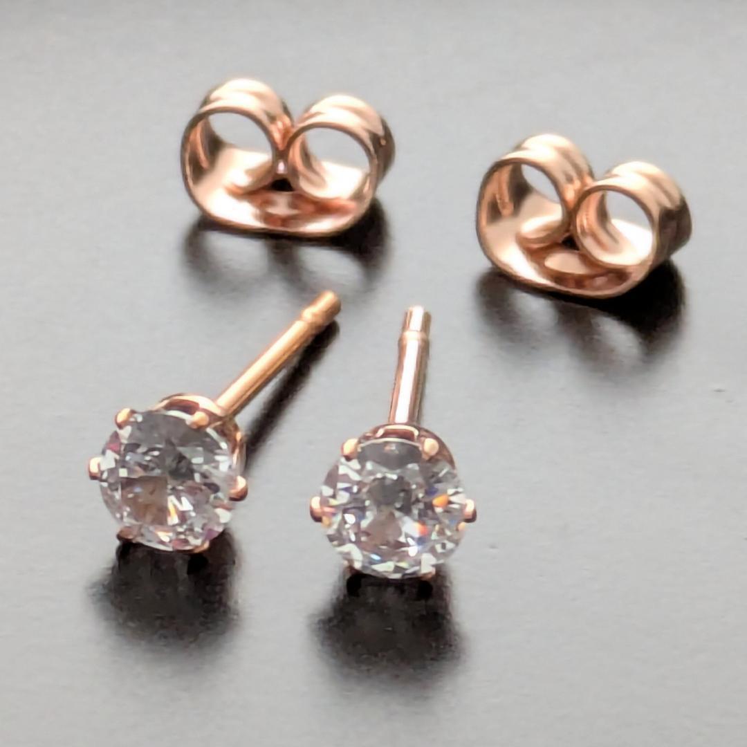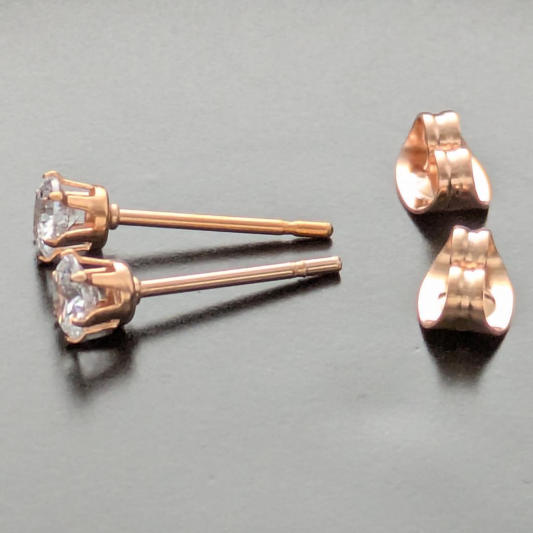 キュービックジルコニア  ひと粒ピアス 4ミリ ピンクゴールド *1598
