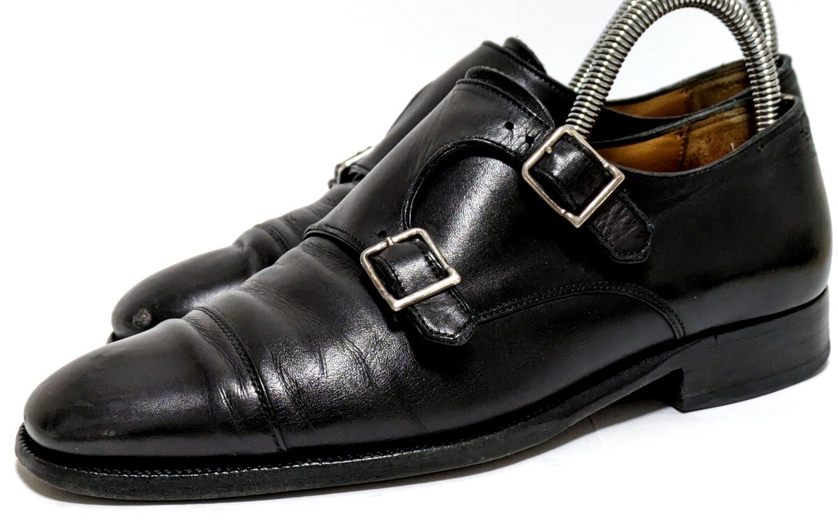 良品 [イタリア製] Ralph Lauren 24 cm  ビジネスシューズ ダブルモンクストラップ メンズ ブラック フォーマル 紳士靴 革 革底
