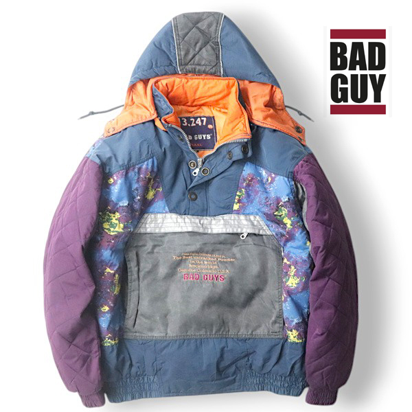90s ヴィンテージ!美品 BAD GUYS バッド・ガイ クレイジーカラー 奇抜デザイン スキー プルオーバージャケット ブルー×パープル M |