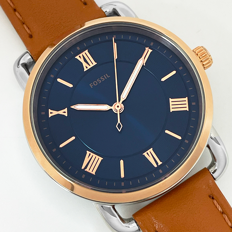 | カラー | ローズゴールド/シルバーケース ブルー文字盤 ブラウンレザーベルト |