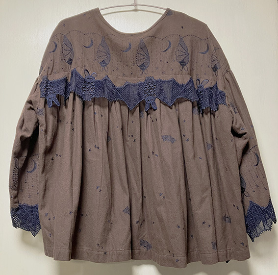 送料無料! marble SUD コウモリ 蝙蝠 レース 刺繍 ブラウン Bat Lace ギャザーブラウス プープレなどお好きな方にもオススメ