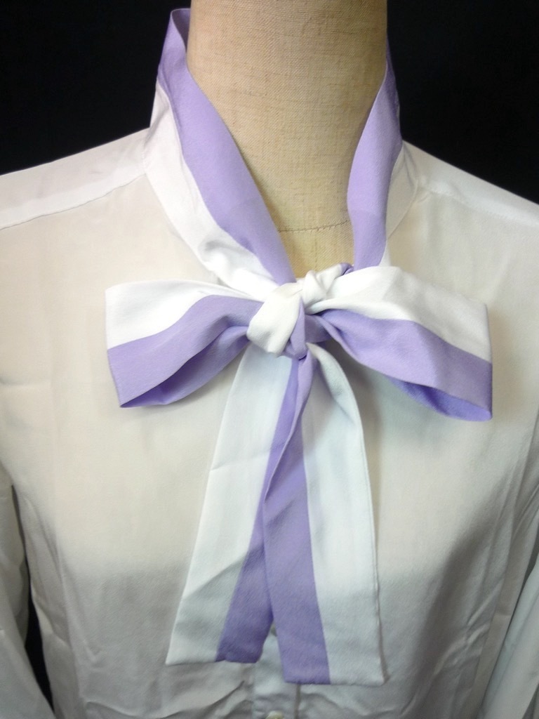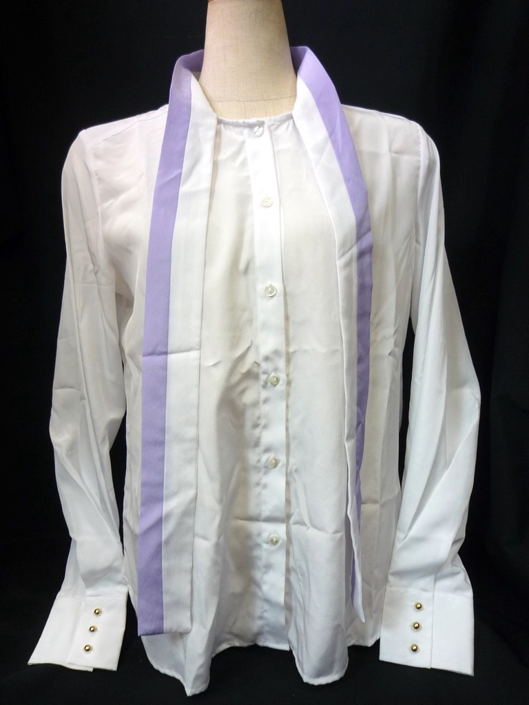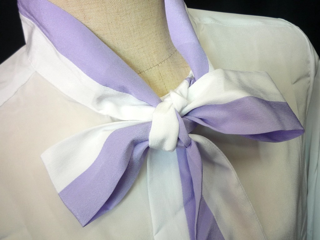 ナラカミーチェ NARACAMICIE バイカラー ボウタイ 長袖 ブラウス シャツ 白×ラベンダー 袖口メタルボタン 美デザイン 華やか 綺麗 美品 通勤 通学 定形外OK_定価24200円⑥