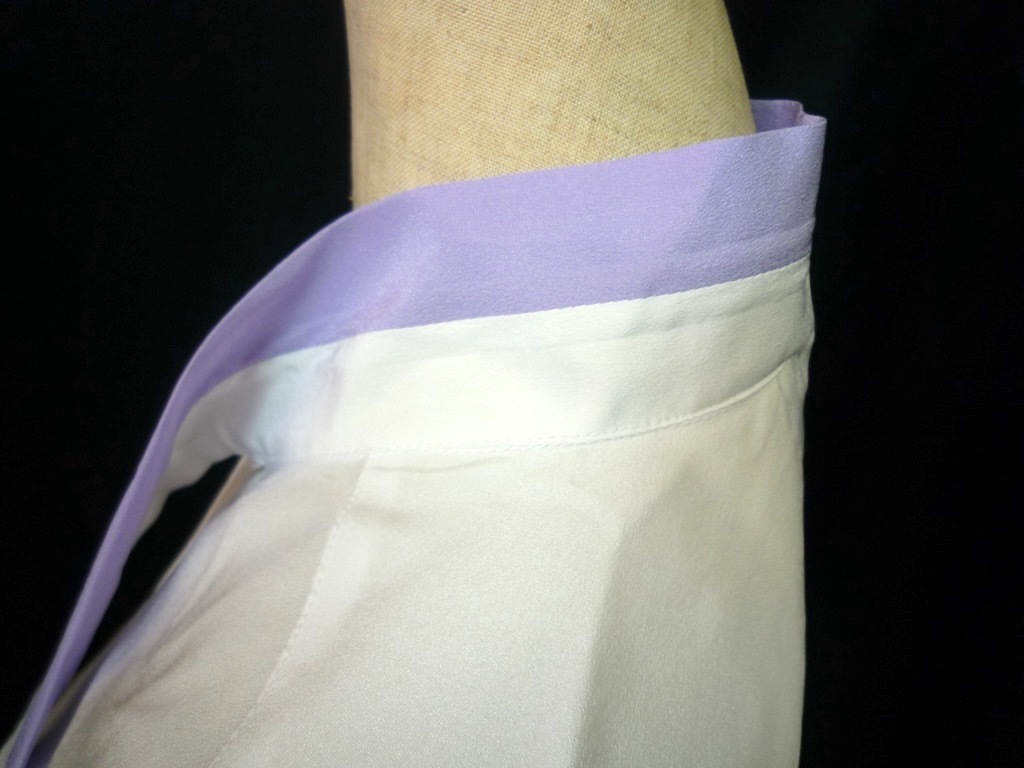 ナラカミーチェ NARACAMICIE バイカラー ボウタイ 長袖 ブラウス シャツ 白×ラベンダー 袖口メタルボタン 華やか 綺麗 美品 定価24200円⑥