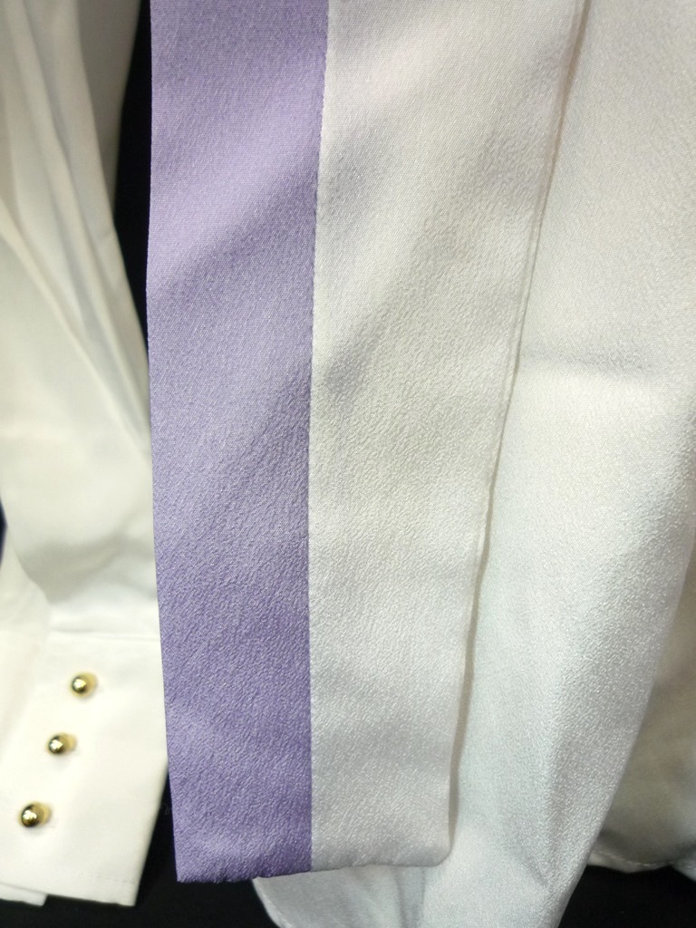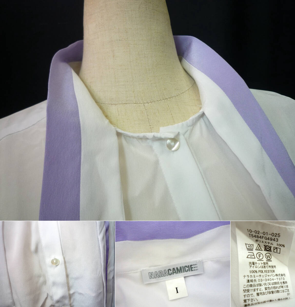 説明 ご覧頂き有難うございます。ナラカミーチェ NARACAMICIE バイカラー ボウタイ 長袖 ブラウス シャツ 白×ラベンダー 袖口メタルボタン 美デザイン 華やか 綺麗 美品 通勤 通学 定形外OK_⑥ になります。画像のものが全てです。