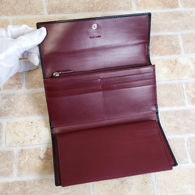 | 商品説明 | ・ブラックとワインカラーでラグジュアリー感のある 差込式の長札入れが付いた レザー 長財布です。 ・カラー ブラック(画像参照) ・素材 レザー(本革) ・付属品 箱※薄汚れあり ケアタグ ・サイズ 縦幅 約10.3cm(中央部) 横幅 約19.0cm マチ 約2.5cm(最大幅) 長札入れ 約17.0×9.0×1.0cm ・収納 カード室×6 ジッパーポケット×1 札室×1 フリーポケット×3 長札入れ:収納×2 ・コンディション 未使用品ですが、保管時に出来た軽いスレが所々にあります。 本体正面から見て右上フラップ部分に端から約1cm横線の薄いスレがあり、フラップ左側に点状の圧迫混があります。(画像参照) 保管時に出来た長札入れにスナップの圧迫混、同じ面に点状のキズがあります。(画像参照) ※個人保管商品ですので、店舗コンディションをお求めの方はご入札をお控えください。ご理解の上ご入札お願いいたします。 |