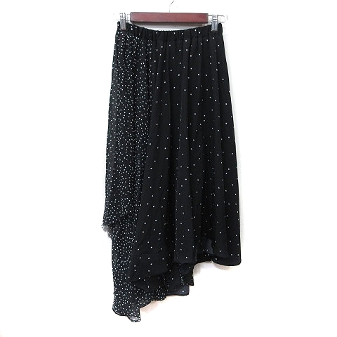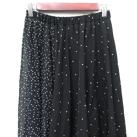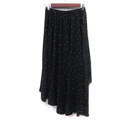 ジーナシス JEANASIS フレアスカート ギャザー シフォン ミモレ ロング ドット アシンメトリー F 黒 ブラック /YI レディース
