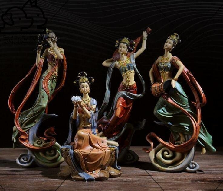 【ケーリーフショップ】復古敦煌禅意飛天仕女置物四人の美女