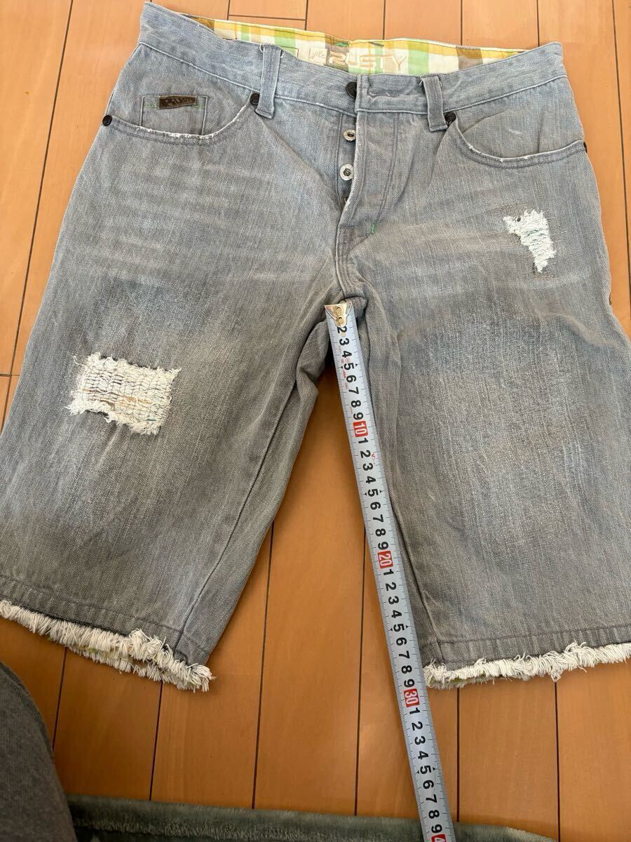 こちらの商品は、RUSTYの30インチ、ハーフパンツの出品になります。数回しか使用せずに保管してました。ダメージ加工しており、なかなかレアなパンツです。使用される方是非ご検討ください。
