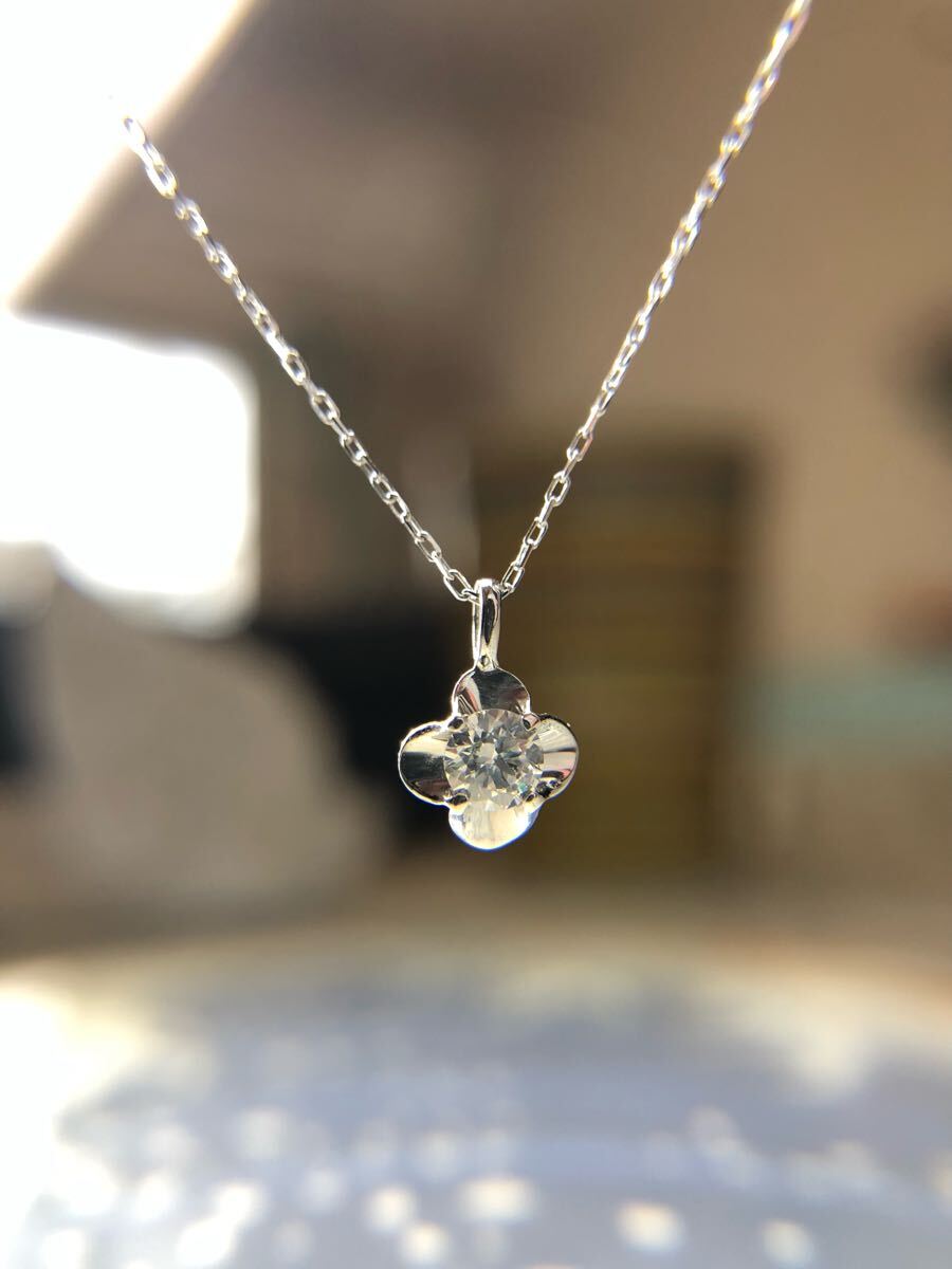 ご覧頂きまして、ありがとうございました。 こちら新作のダイヤモンドペンダントネックレスです。 高品質のダイヤを使って、とても輝くです。